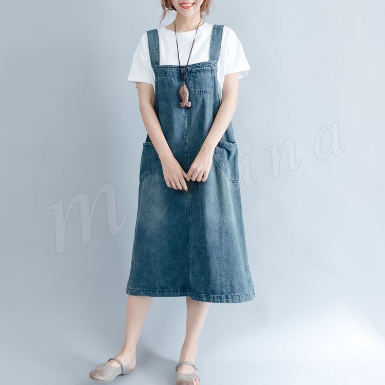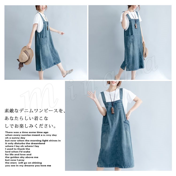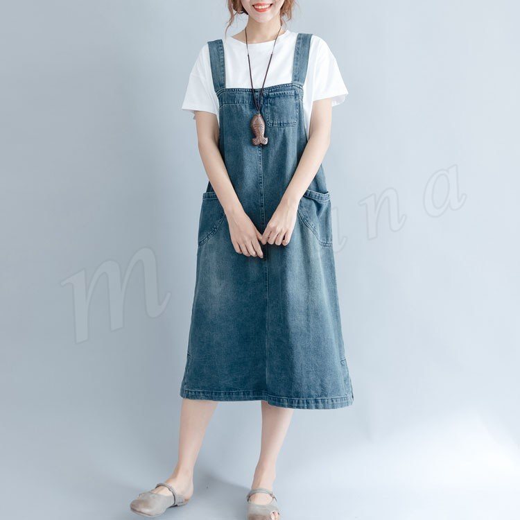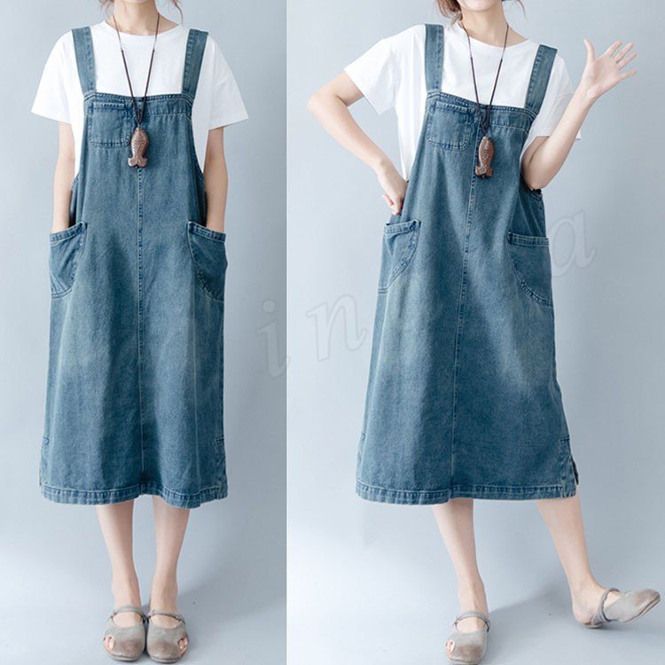 デニム サロペットワンピース サロペット オールインワン デニム ジャンバースカート デニム ワンピース デニムスカート ロング丈 サロペッ
