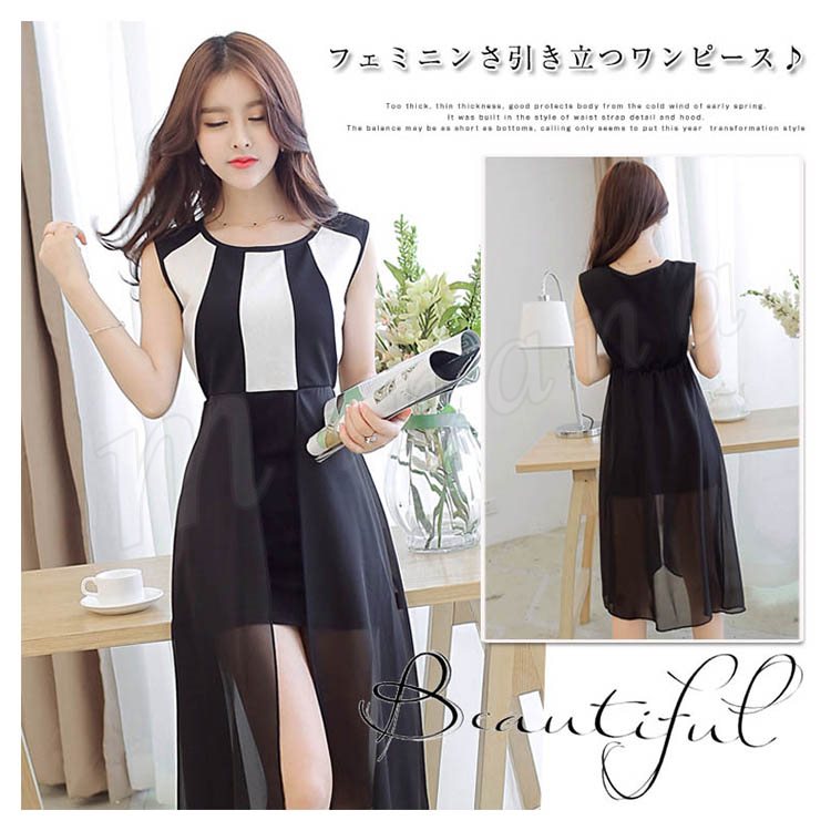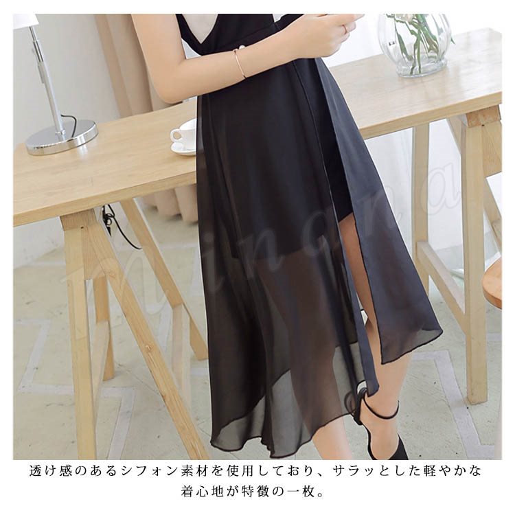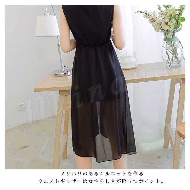 [黒]ワンピース ワンピ ドレス レディース 膝丈 ひざ丈 シフォン ジョーゼット 通勤 オフィス パーティー 女子会 春夏 女子 黒 ブ
