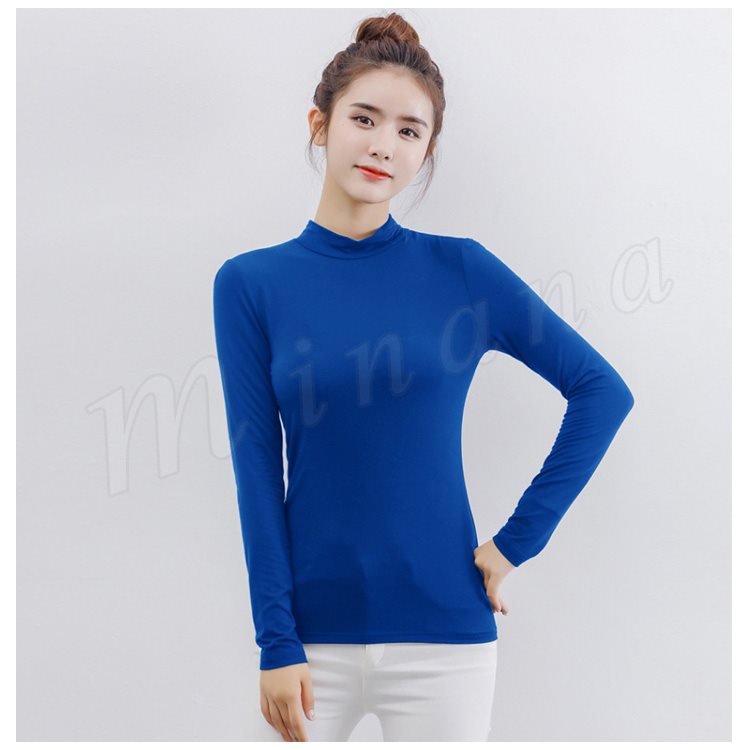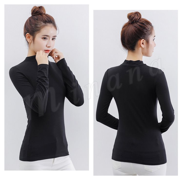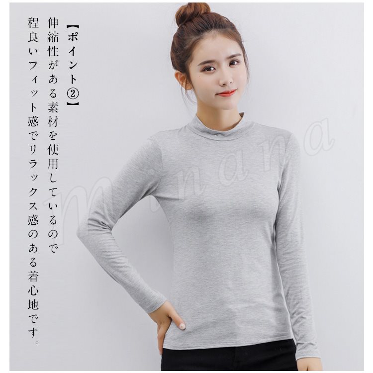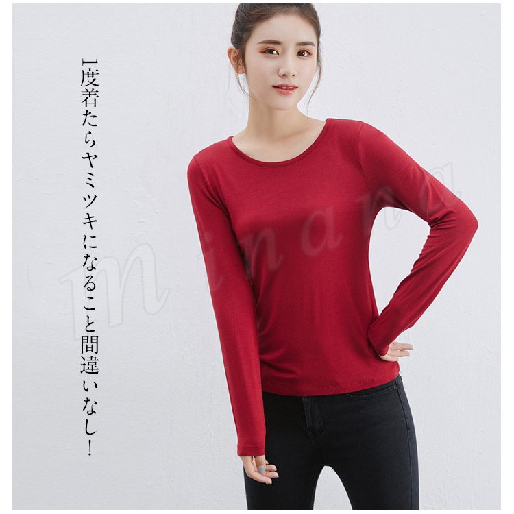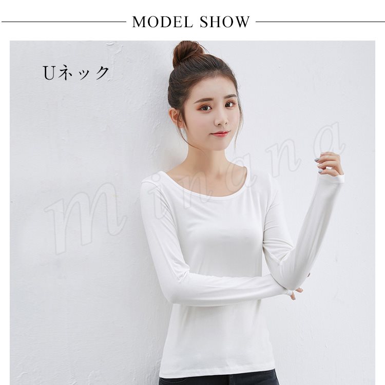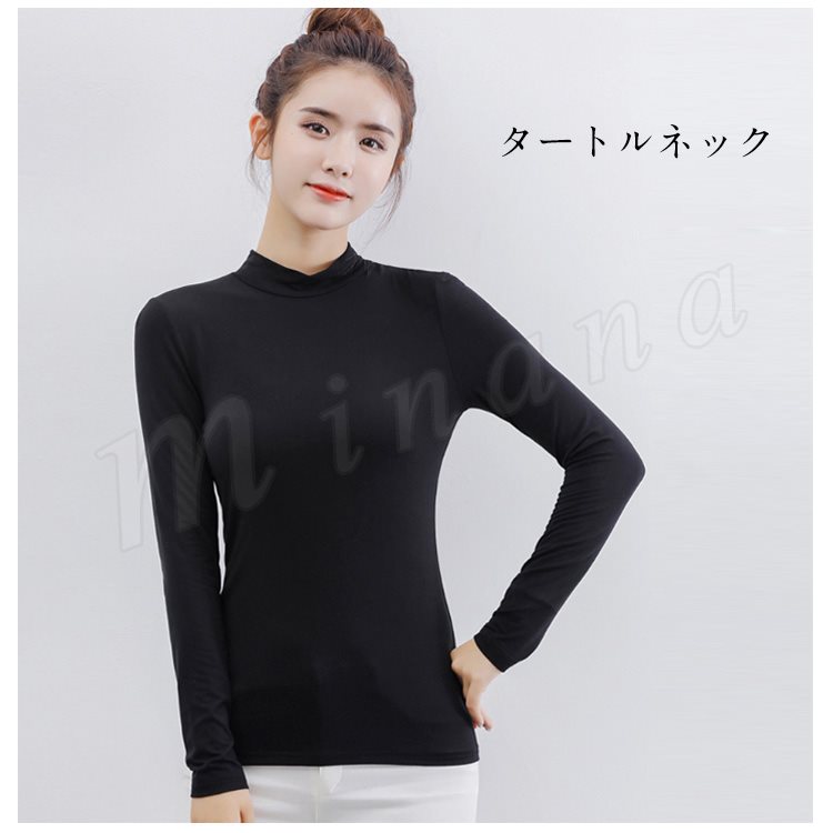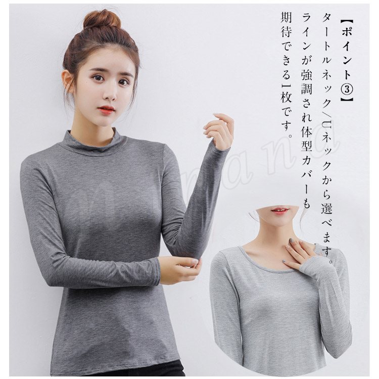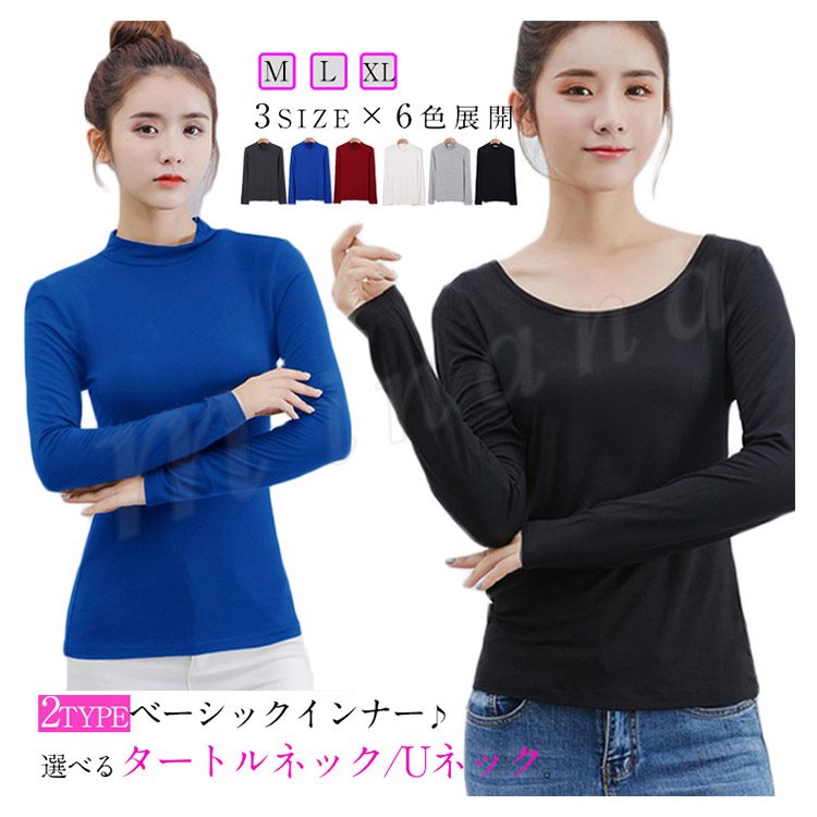 [2タイプx6色展開]インナー 長袖Tシャツ レディース タートルネック/Uネック チュニック トップス ストレッチ シンプル カジュアル