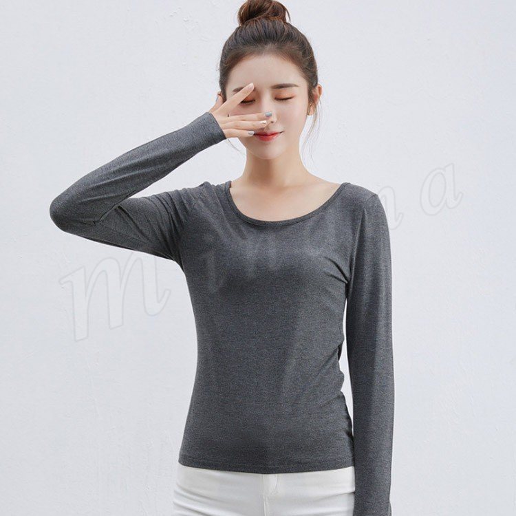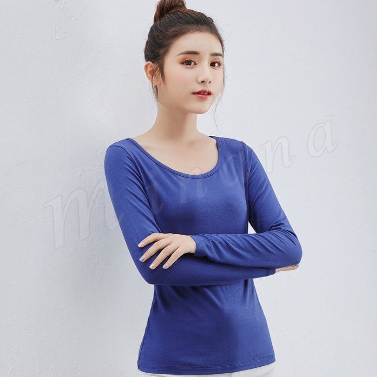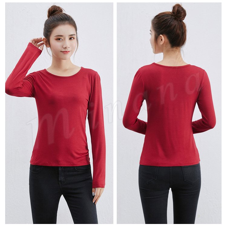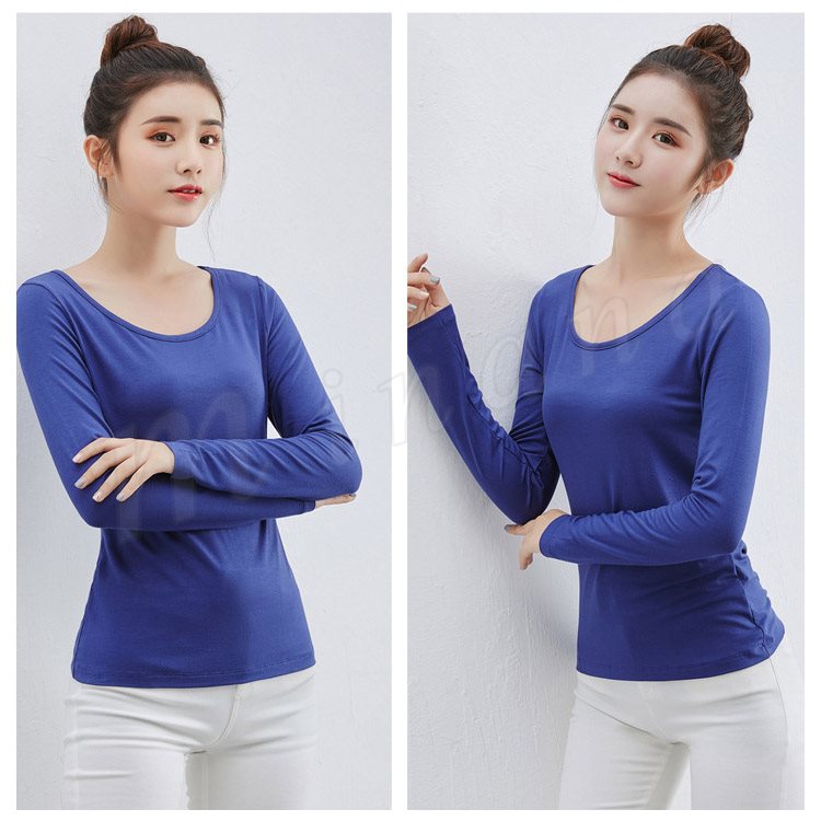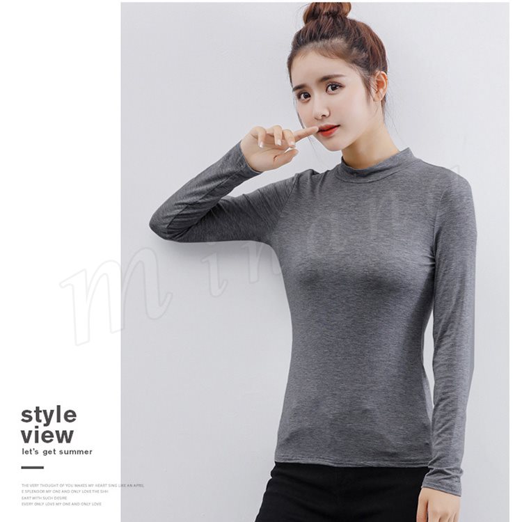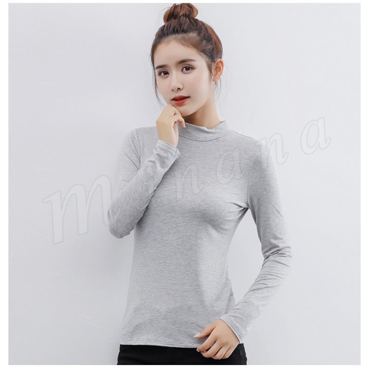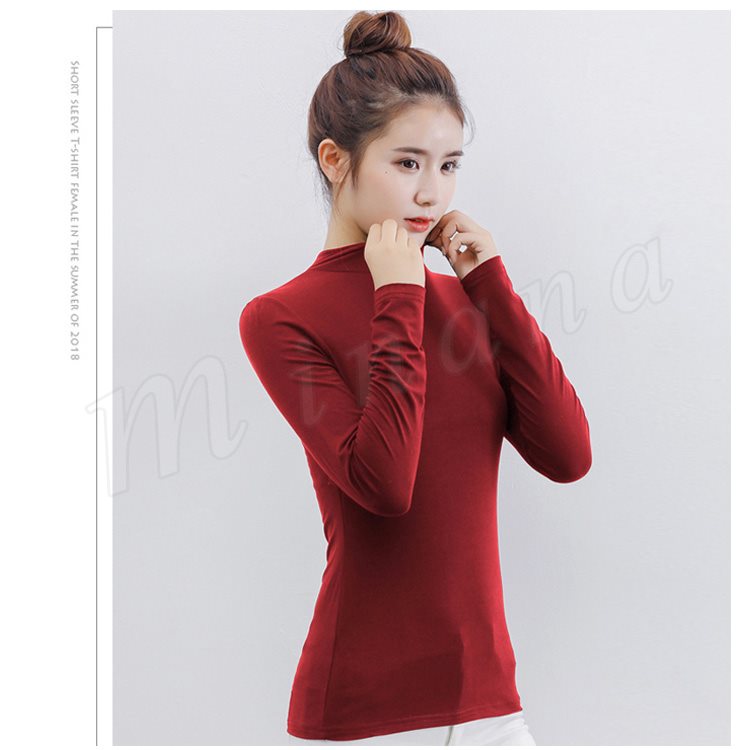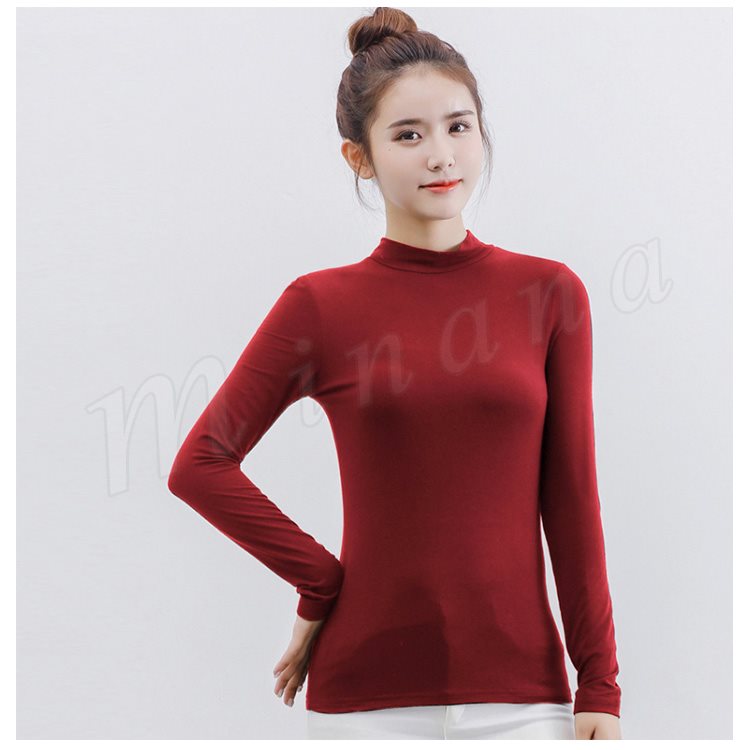 [2タイプx6色展開]インナー 長袖Tシャツ レディース タートルネック/Uネック チュニック トップス ストレッチ シンプル カジュアル