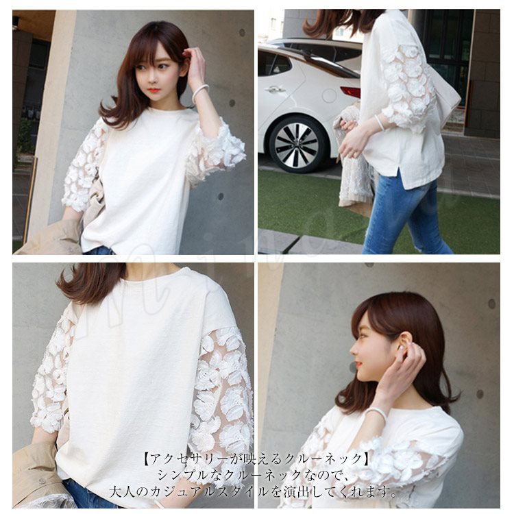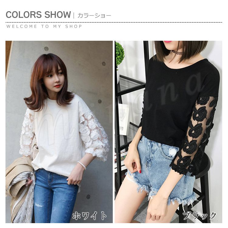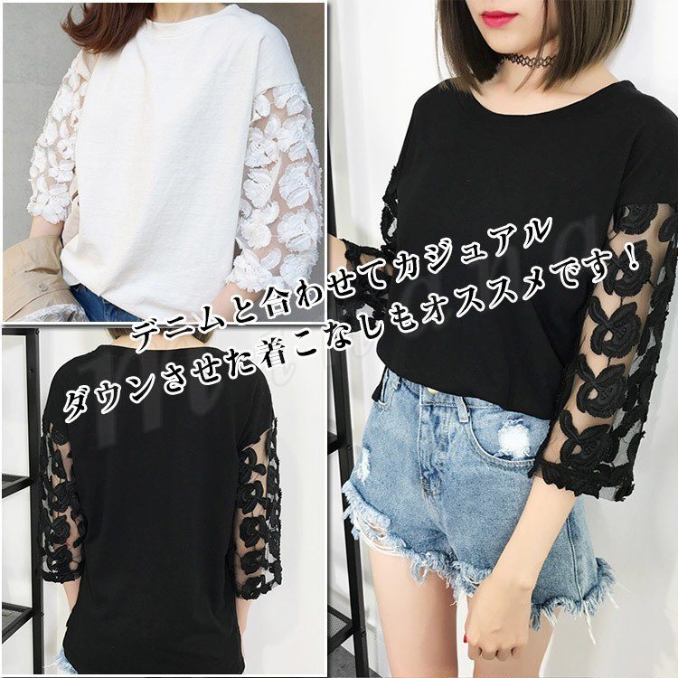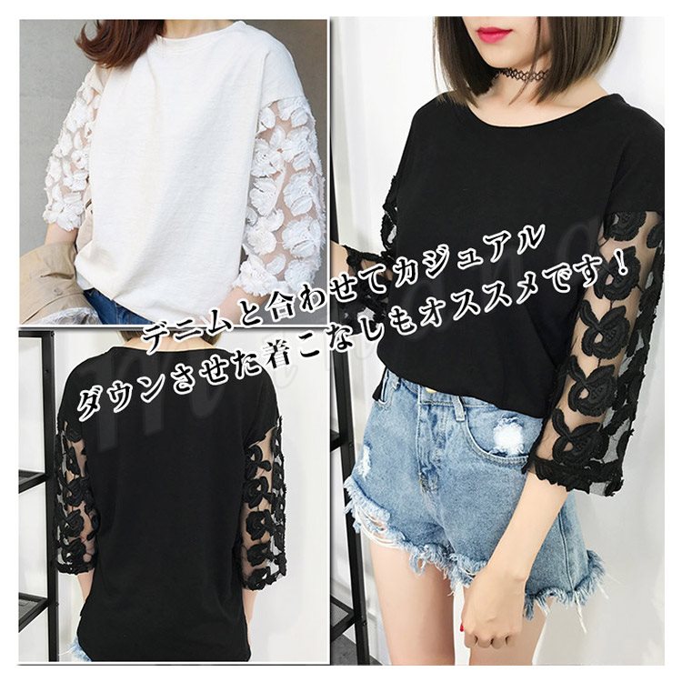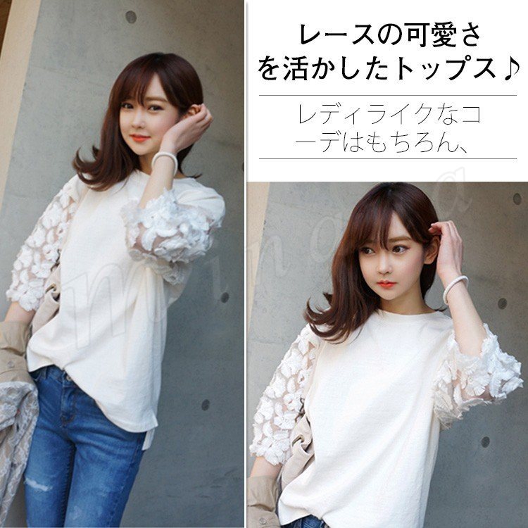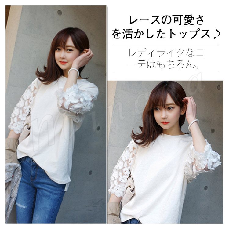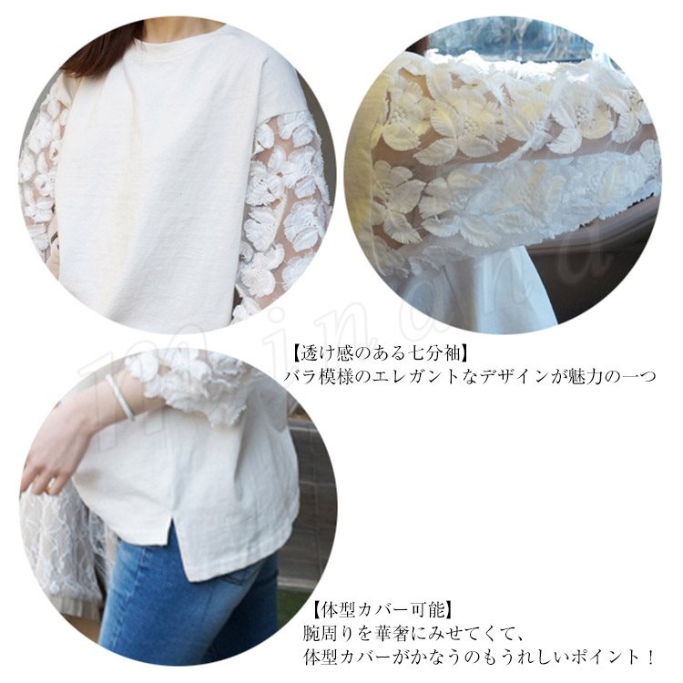 [2色]ブラウス 白レディース春夏トップスバラトップス レース 七分袖 7分袖 白ブラウス ホワイトTシャツ チュニック きれいめ シャツ 体