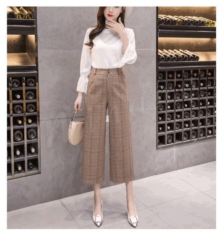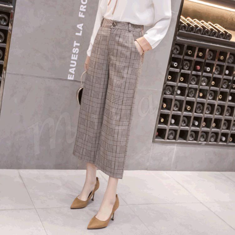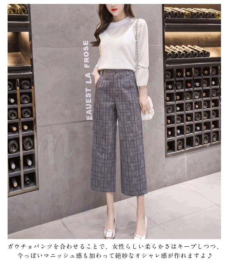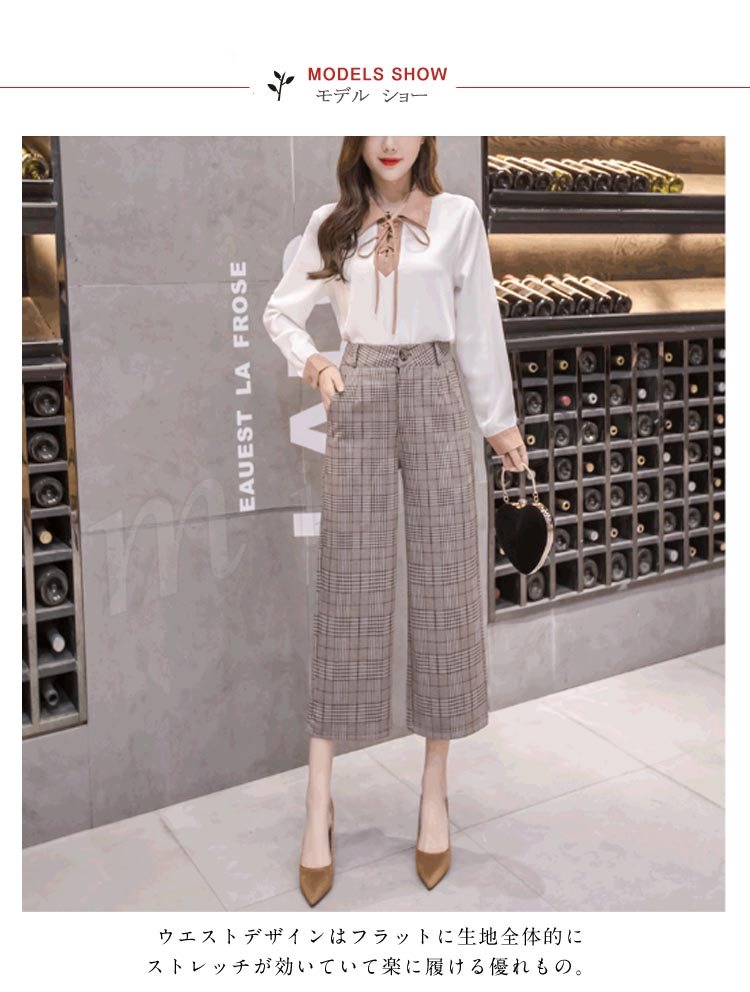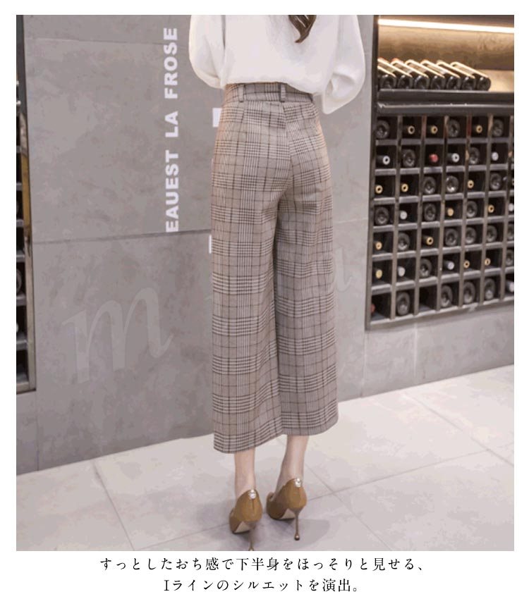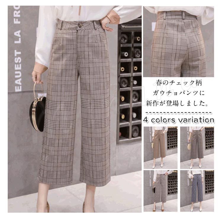 きれいめパンツ レディース ハイウエストボトムス ワイドパンツ ガウチョパンツ チェック柄 体型カバー レディースファッション 春