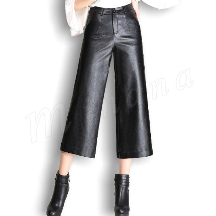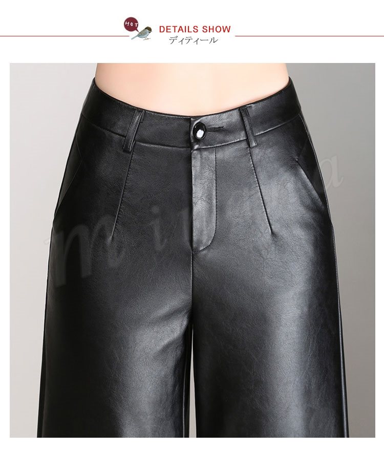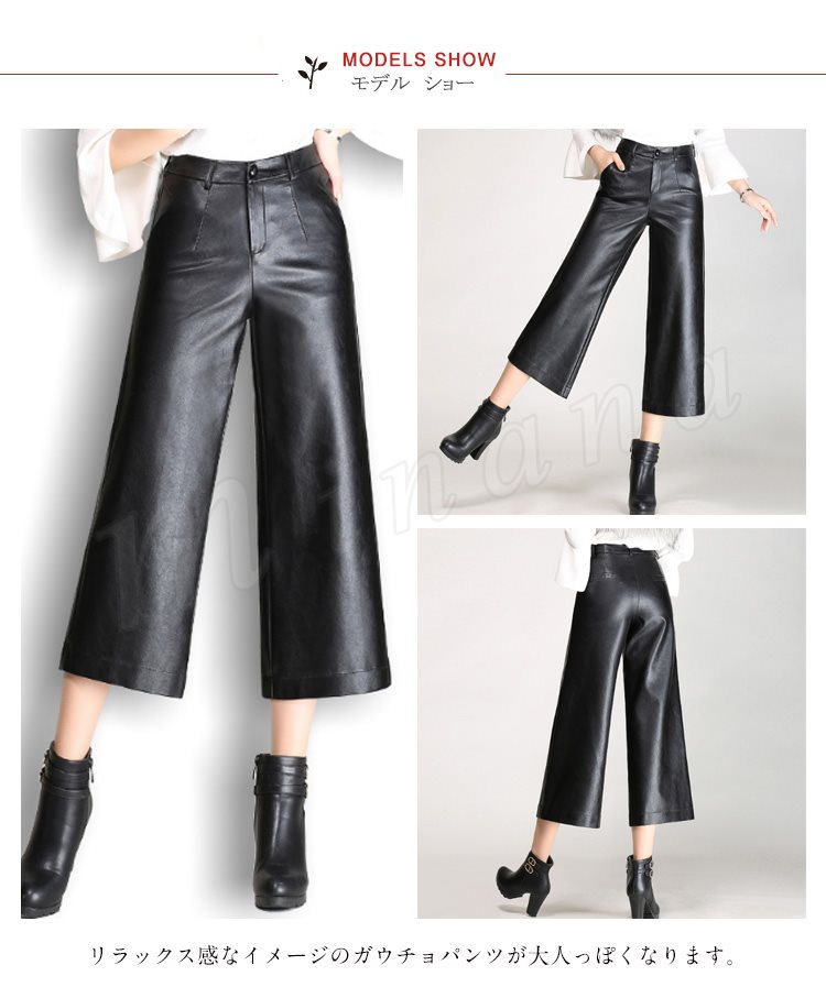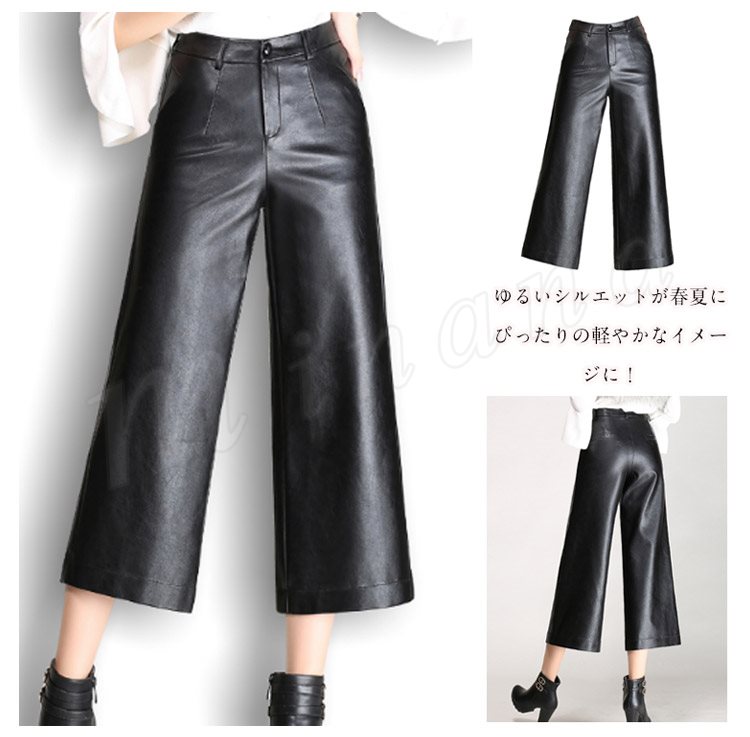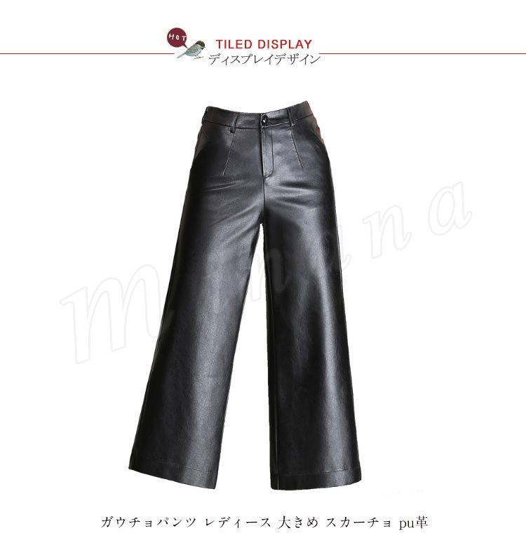 ガウチョパンツ レディース ワイドパンツ スカンツ スカーチョ ロングパンツ pu革ロングパンツ ボトムス 無地 春夏 2018新作パンツ