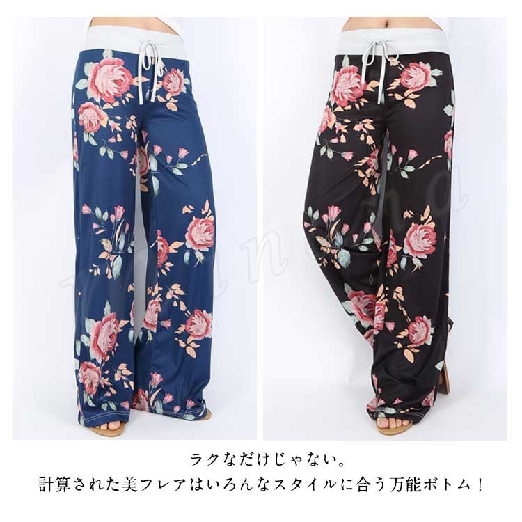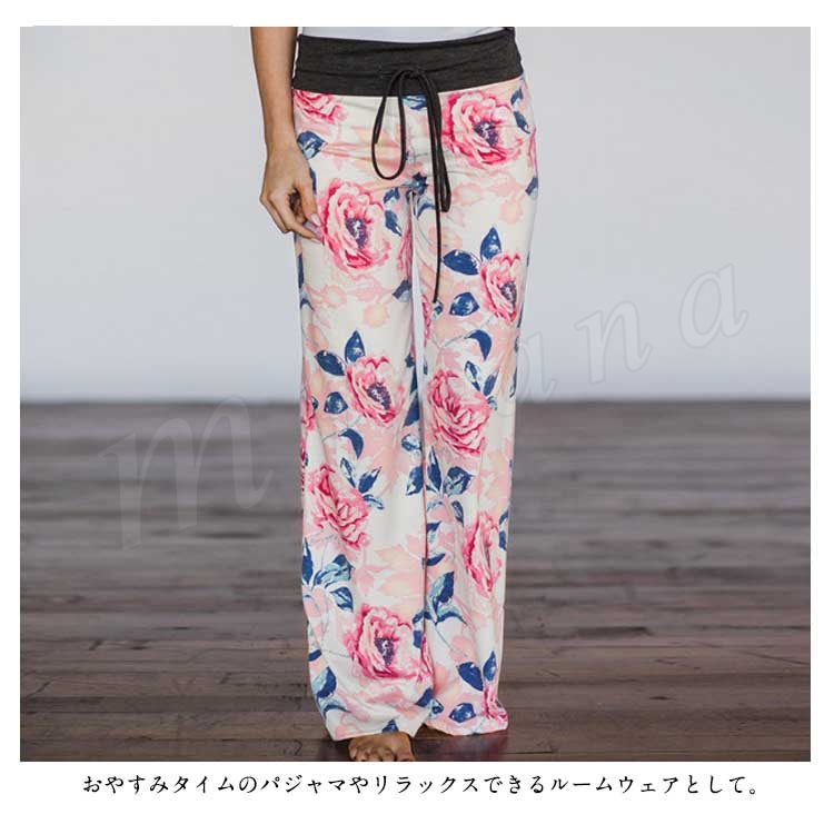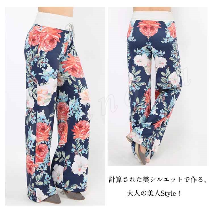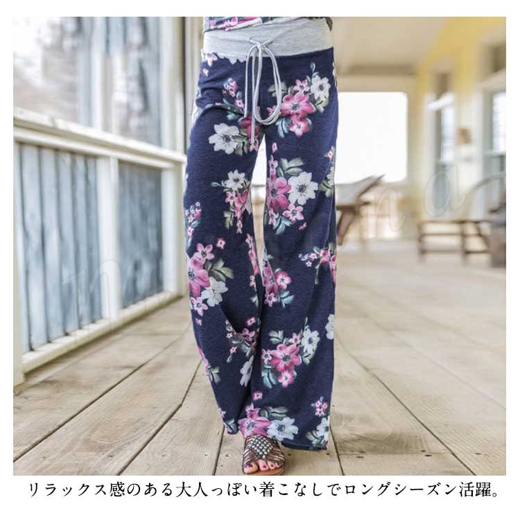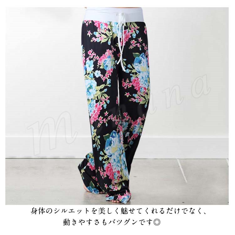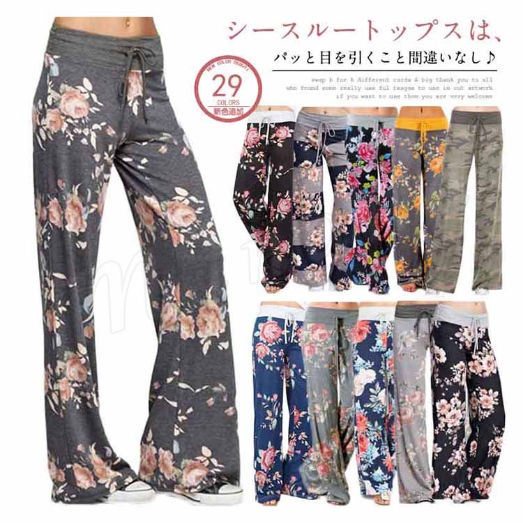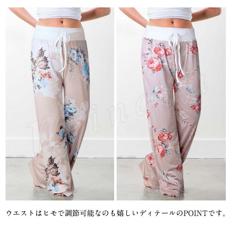 ロング丈 ワイドパンツ レデイース リラックス パンツ 花柄 サルエルパンツ ガウチョパンツ フレアパンツ フレア 10分丈 マキシ丈 ヨガ