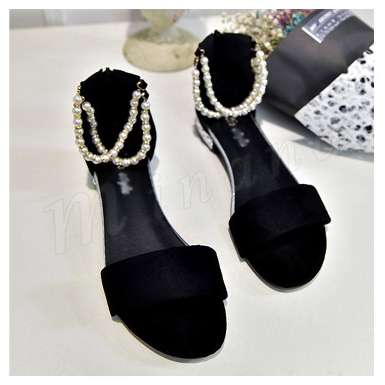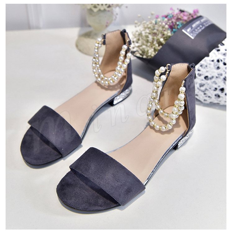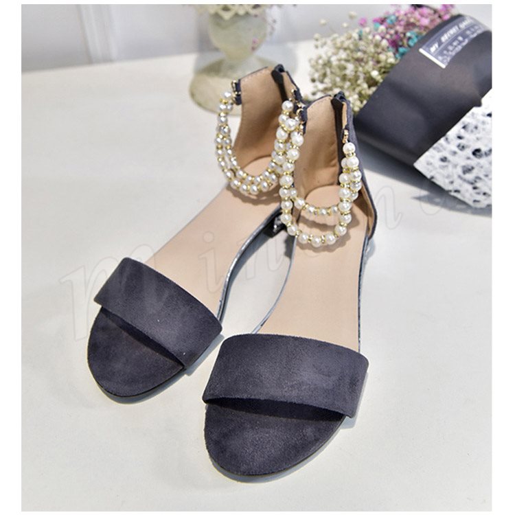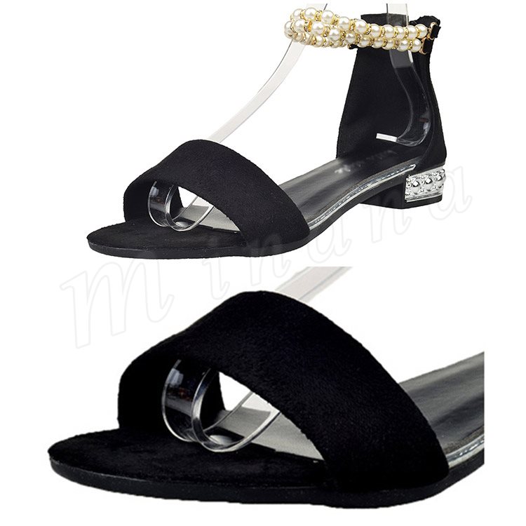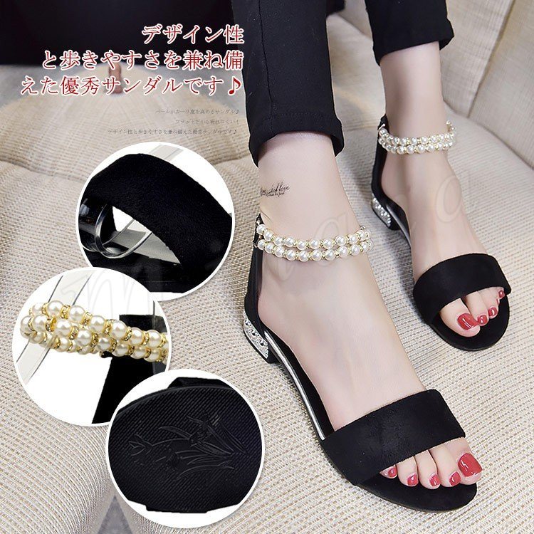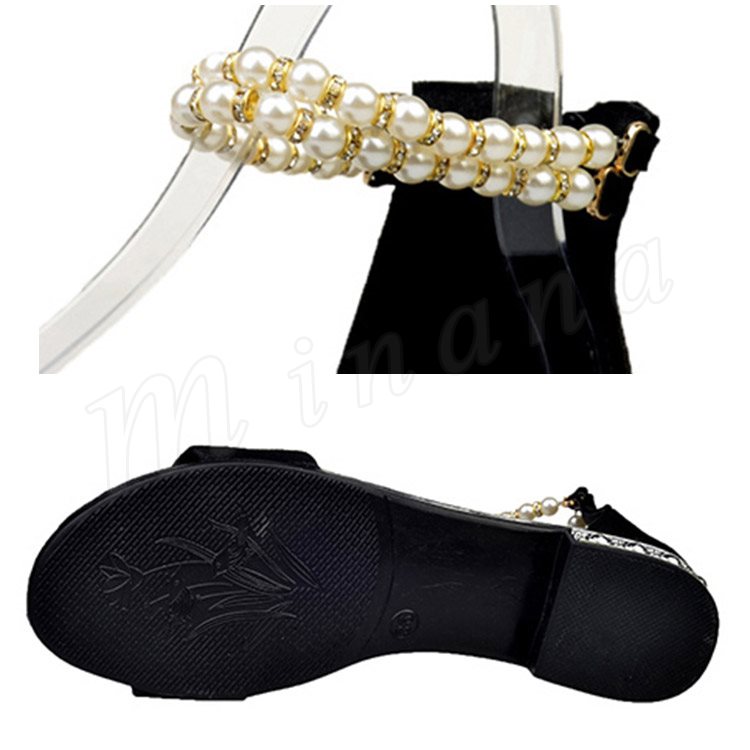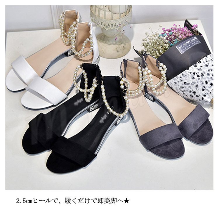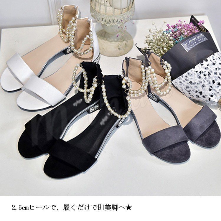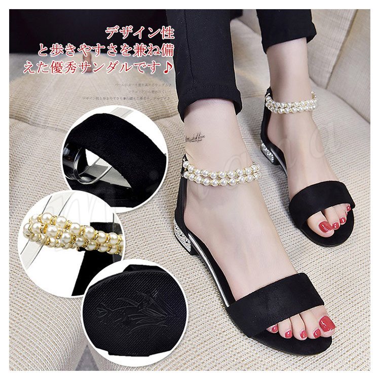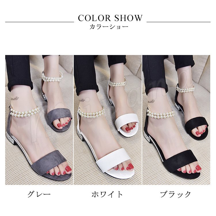 サンダル アンクルストラップ パール サンダル フラットサンダル