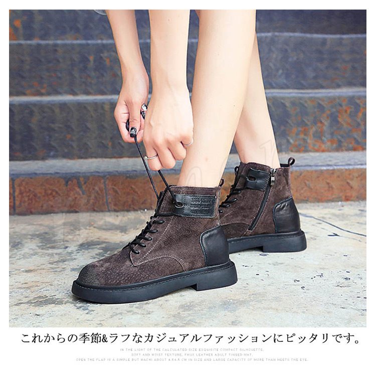 | レースアップショートブーツがこの秋冬大人気! つまさきの形が丸いから、指に優しい履き心地で長時間歩いても痛くなりにくい優秀ブーツです。 軽さが魅力のレトロな風合いが足元に遊び心をプラス♪ これからの季節&ラフなカジュアルファッションにピッタリです。 | |
