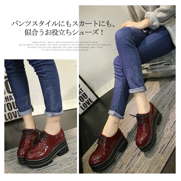 厚底 シューズ スニーカー スクールシューズ ロリータ シューズ レースアップ シューズ ロリータ靴 レディース お嬢様風 シューズ 通学靴