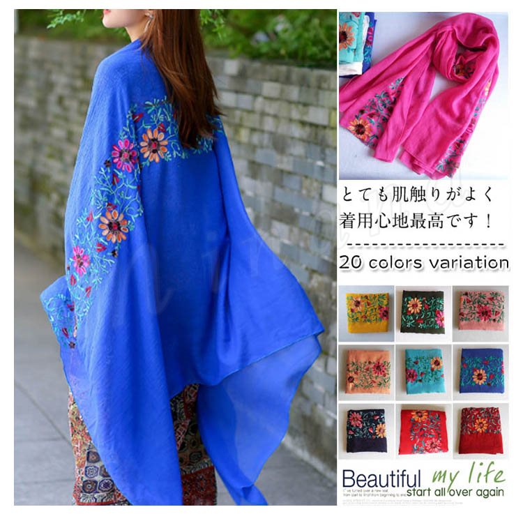 ストール UVカット スカーフ マフラー ストール フラワー柄 花 ニット ボレロ 刺繍 大判ストール 大きい レディース 春夏