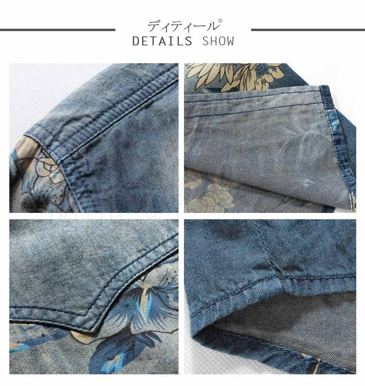 シャツ メンズ カジュアルシャツ メンズ 半袖 花柄 トップス デニムシャツ 薄て 大きいサイズ ストレッチ アメカジ M〜7XL 2018
