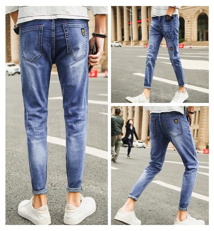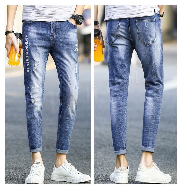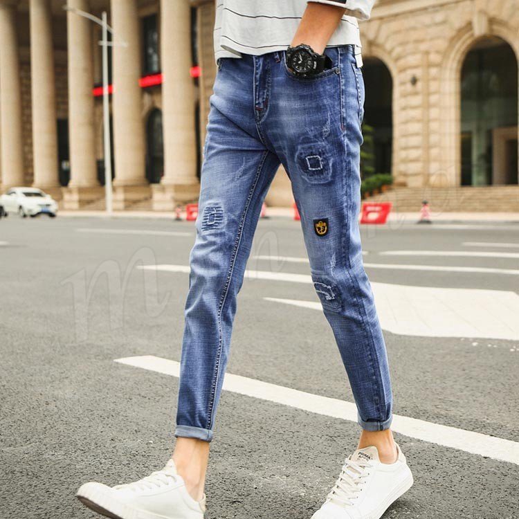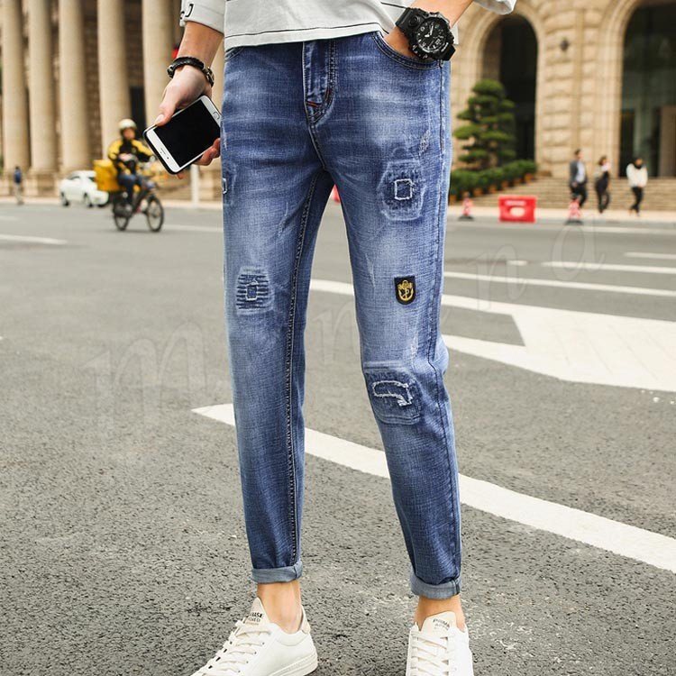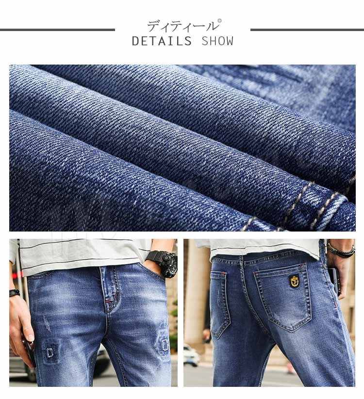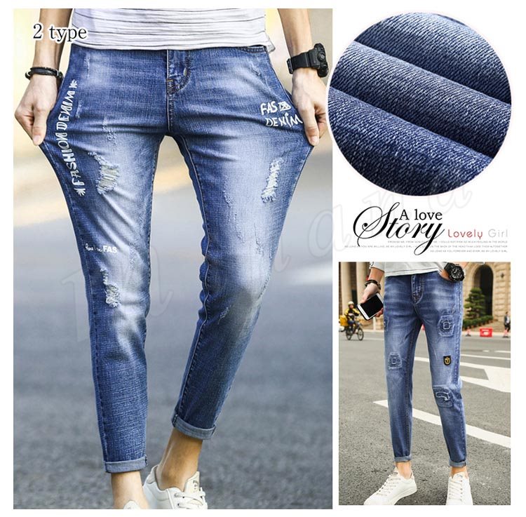 デニムパンツ メンズ ダメージ加工 ロングパンツ ボトムス 無地 サルエルパンツ ジーンズ ストレッチ ジーパン