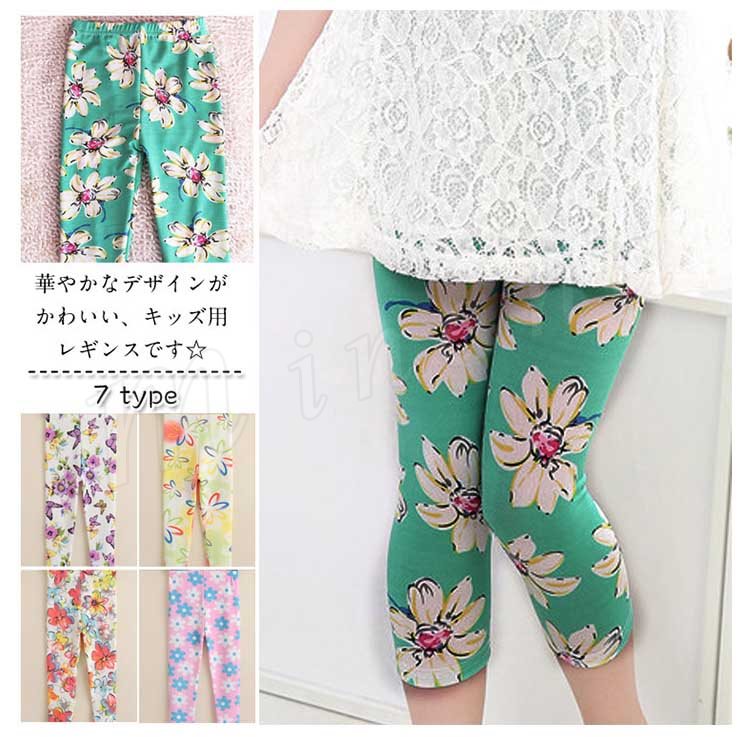 レギンス スパッツ ボトムス 7分丈 ジュニア キッズ 子供 服 子ども こども 女の子 女児 動きやすい カジュアル 花柄 フラワー カラフル かわ