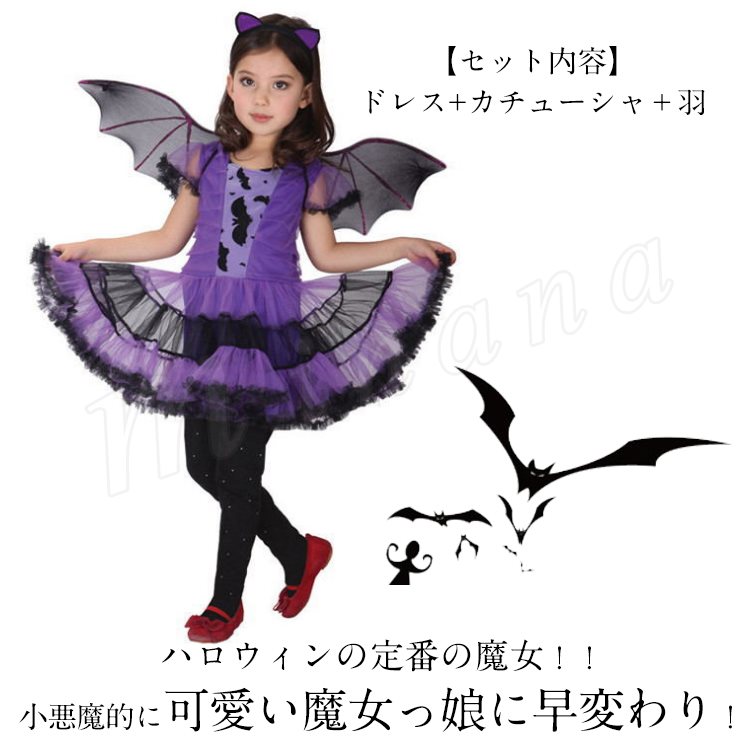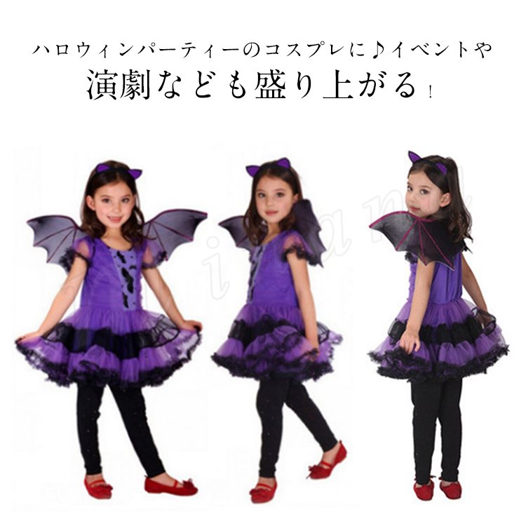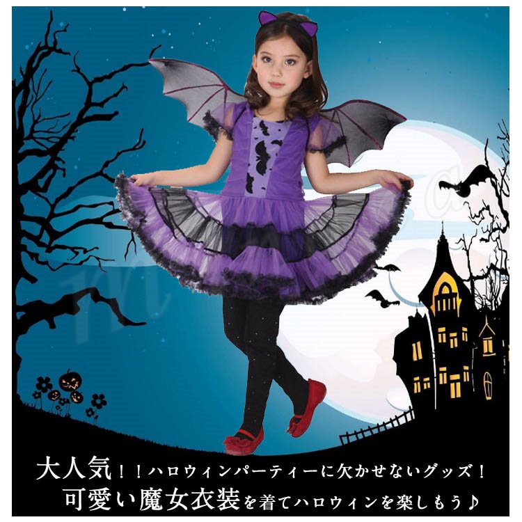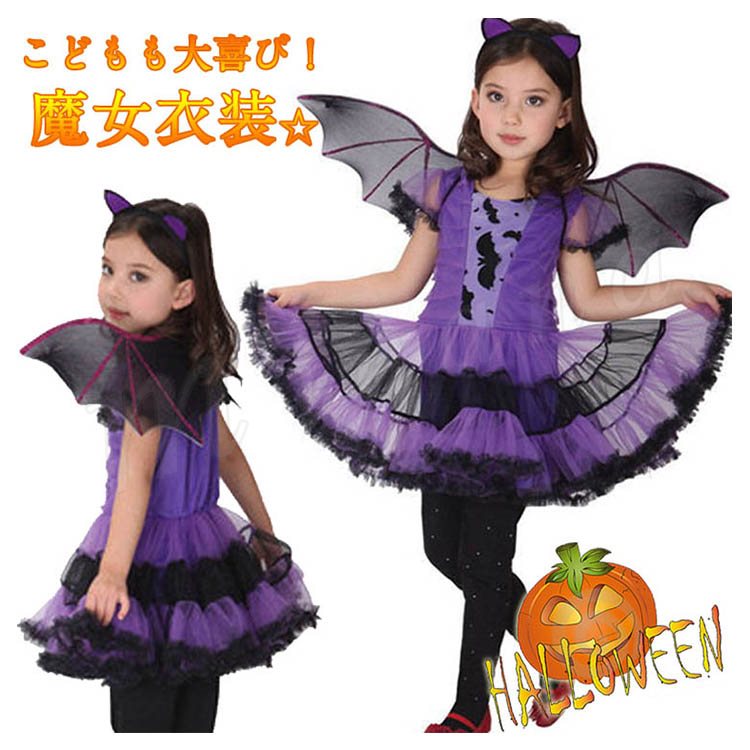 ハロウィン 衣装 コウモリ 魔女 子供 コスプレ 吸血鬼 コスチューム ドレス ワンピース 小悪魔 女の子 ハロウィン 悪魔 デビル 妖精
