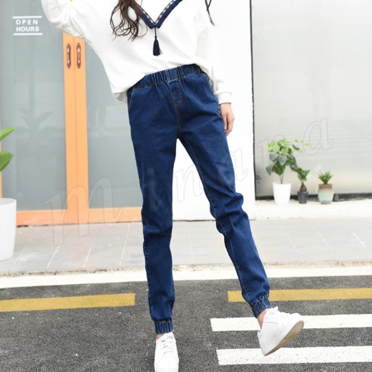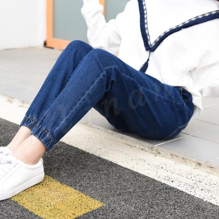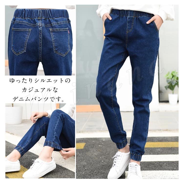 サルエル サルエルパンツ レディース デニム デニムパンツ テーパードパンツ ウエストゴム&裾ゴム 無地