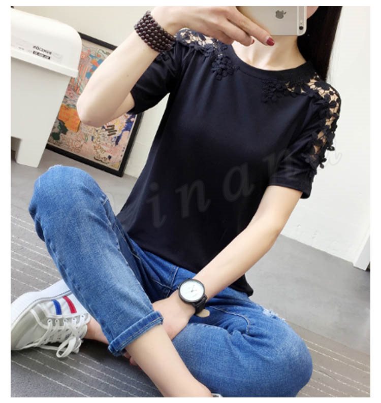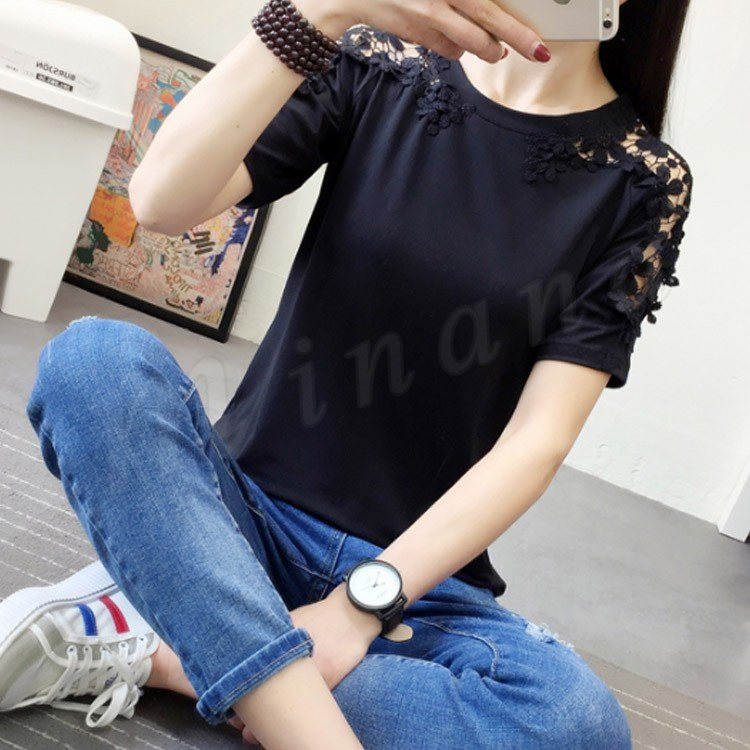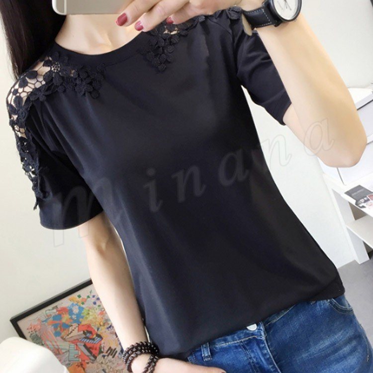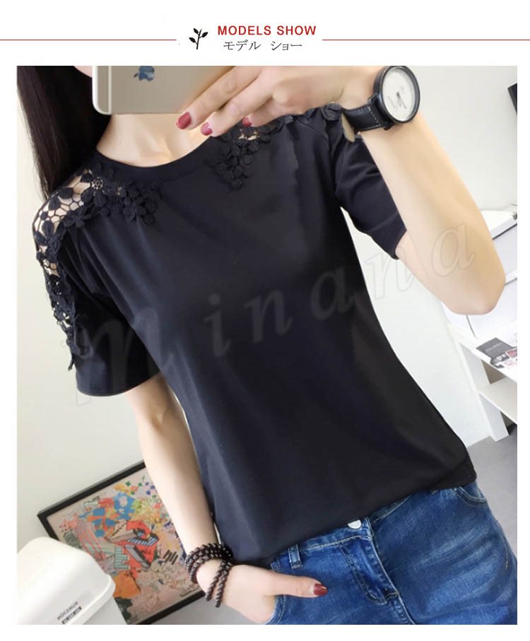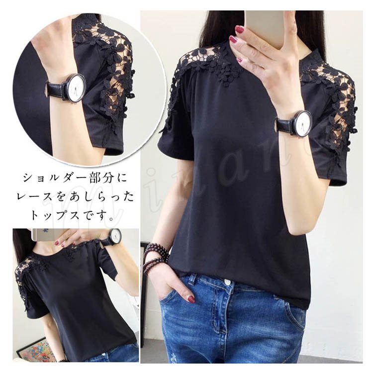 肩レース 半袖Tシャツ カットソー