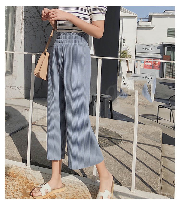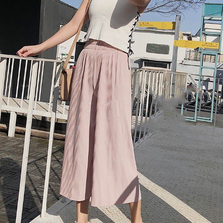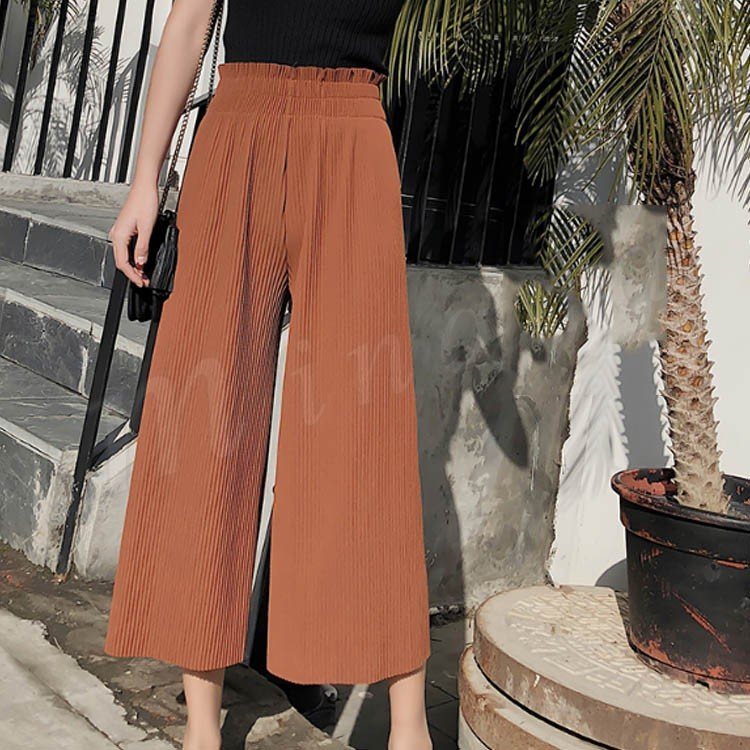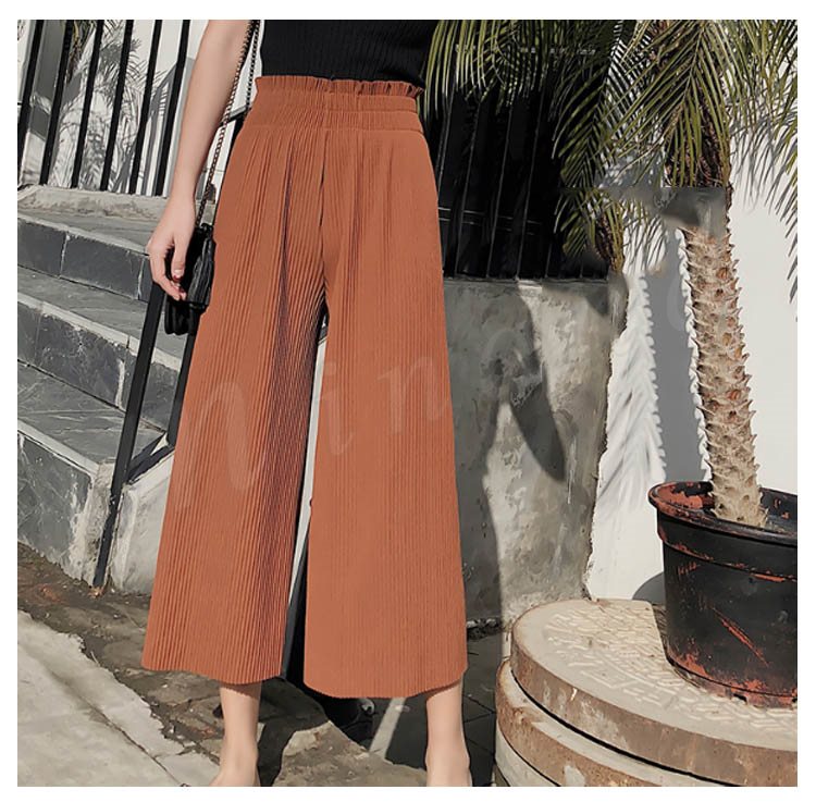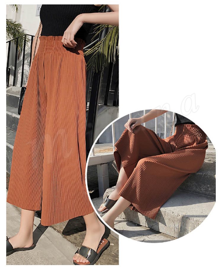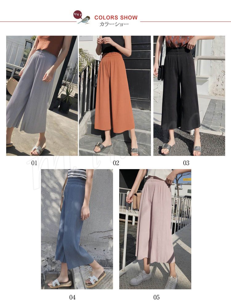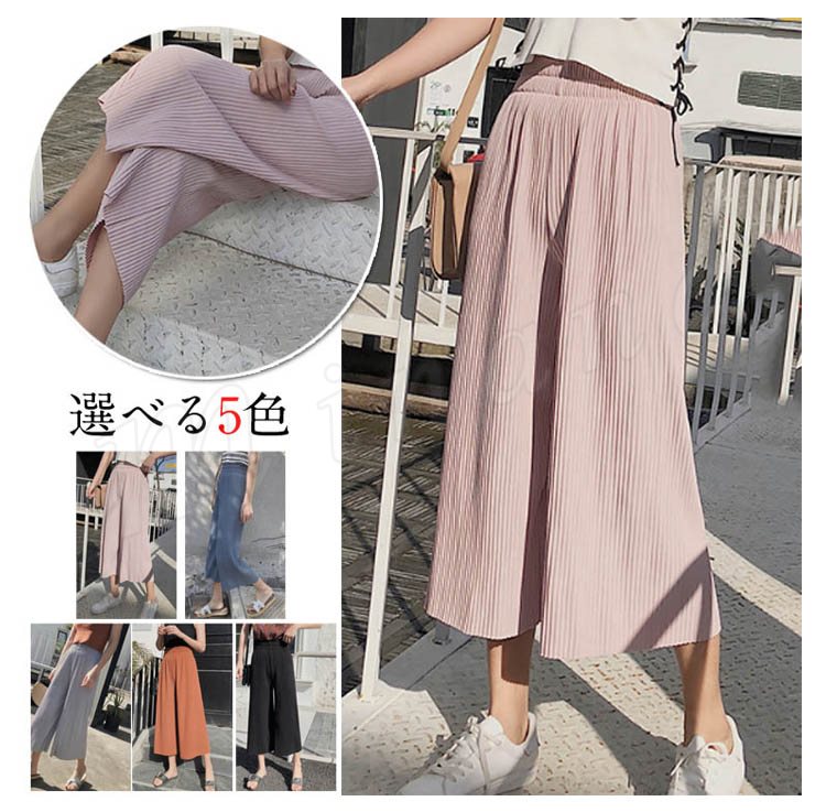 ガウチョパンツ シフォンプリーツ ハイウエスト 9分丈 ワイドパンツ スカーチョ