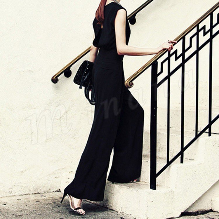 オールインワン パンツドレス バックスリット ロング丈