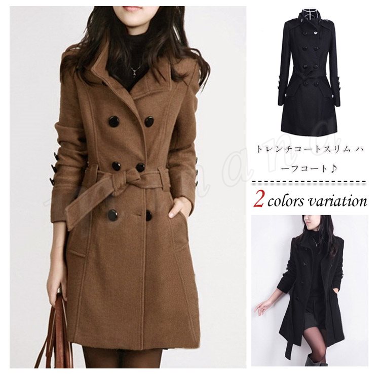 トレンチコート スリム ハーフ 秋春 欧米風 通勤 OL風 ブラック キャメル レディース