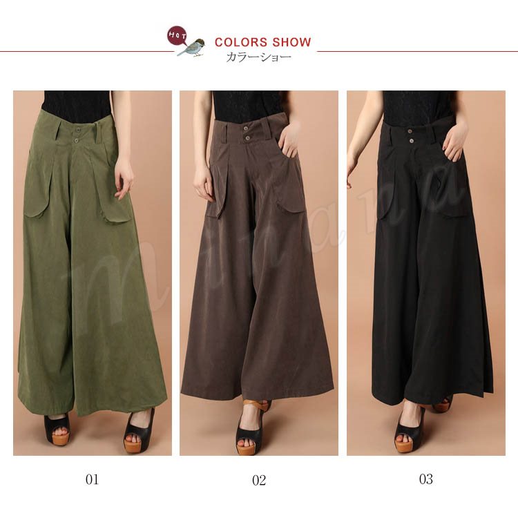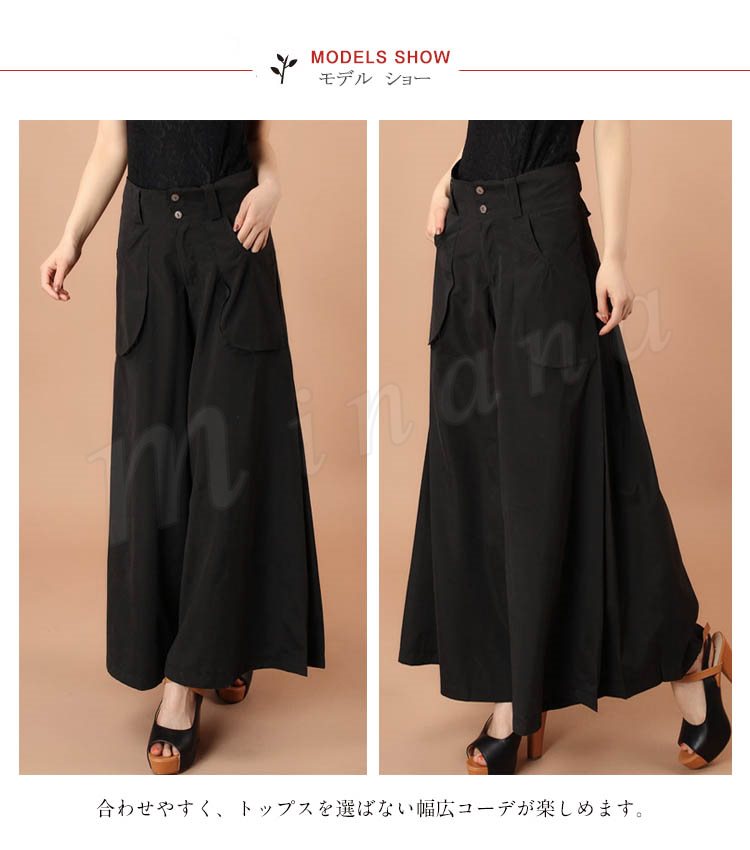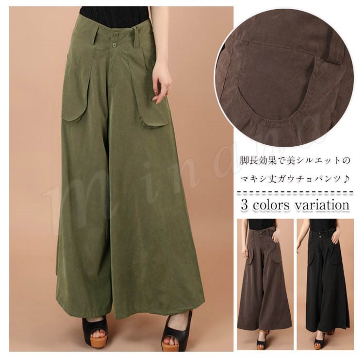ガウチョ レディース パンツ ボトムス ガウチョパンツ ワイドパンツ フレアパンツ マキシ丈