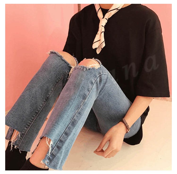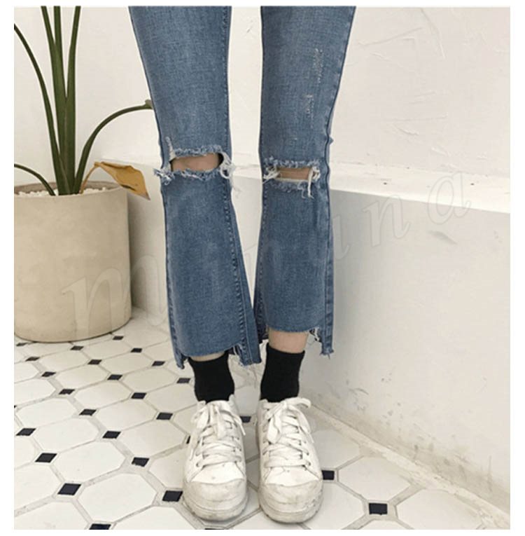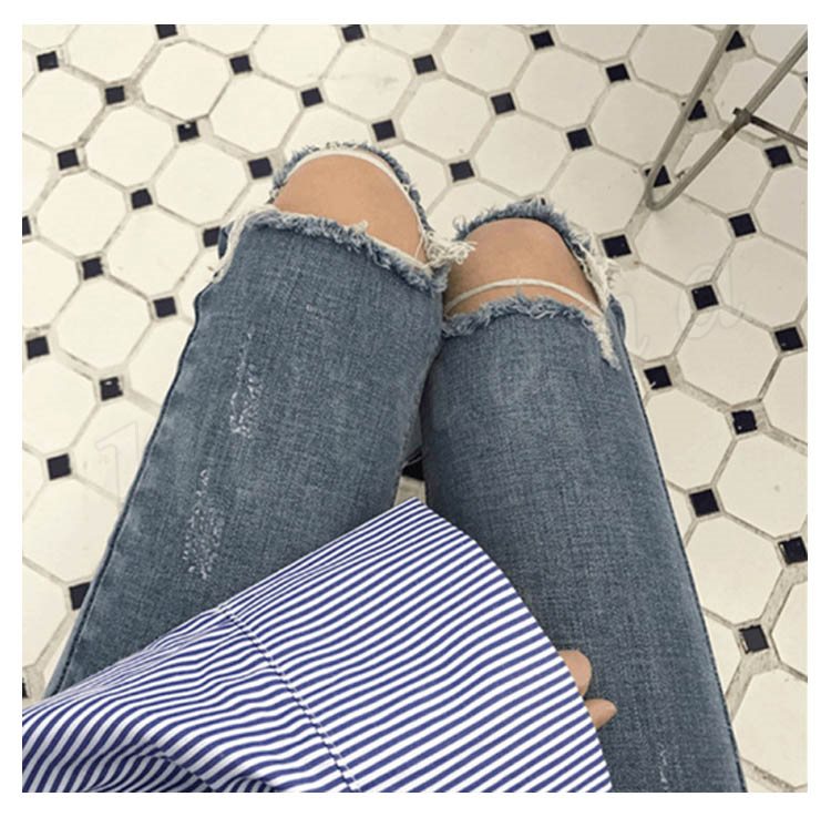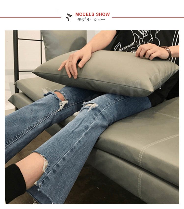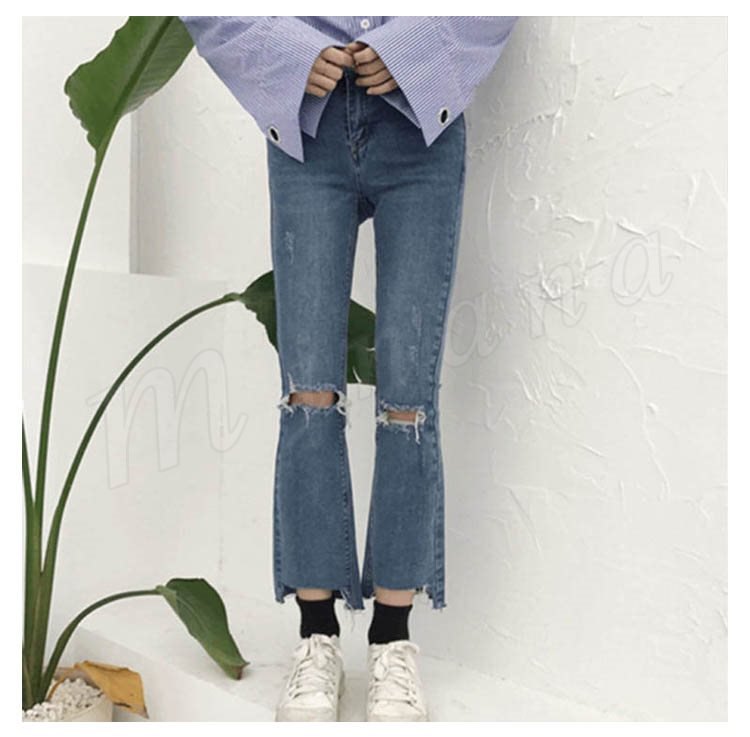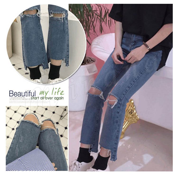 ボトムス パンツ デニム スキニー ダメージ クラッシュ ハイウエスト 膝あき 美脚