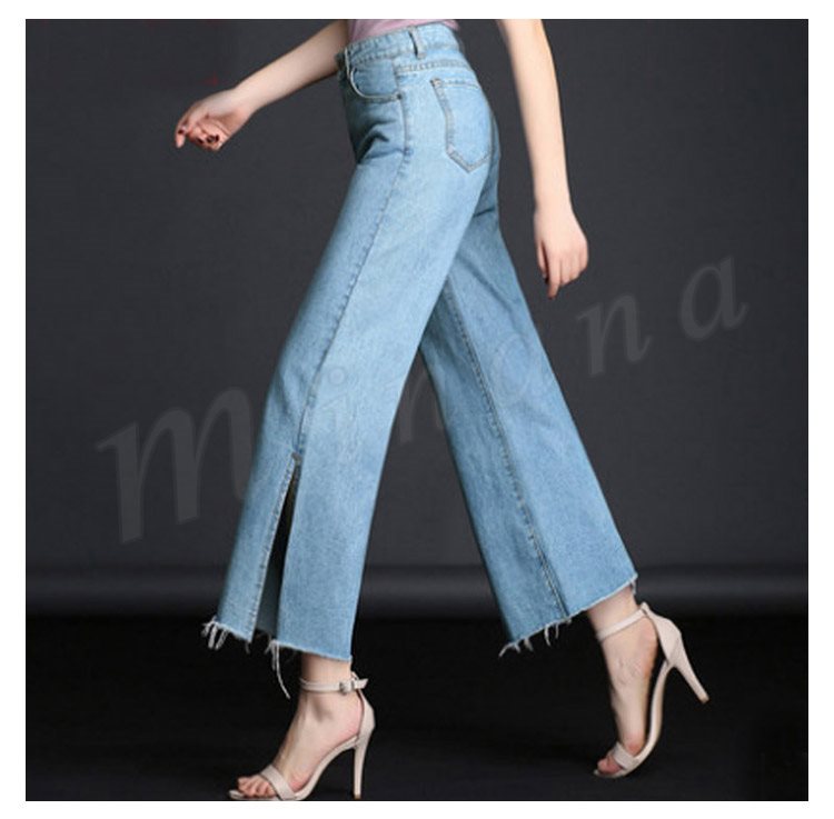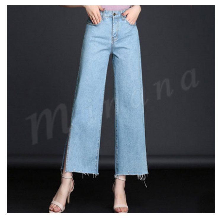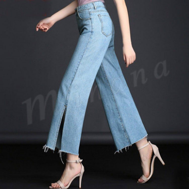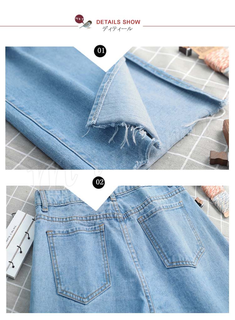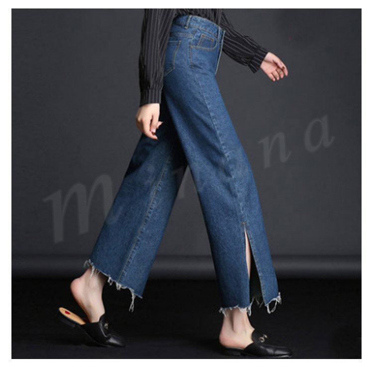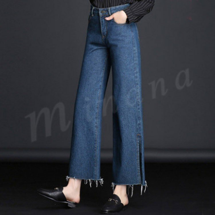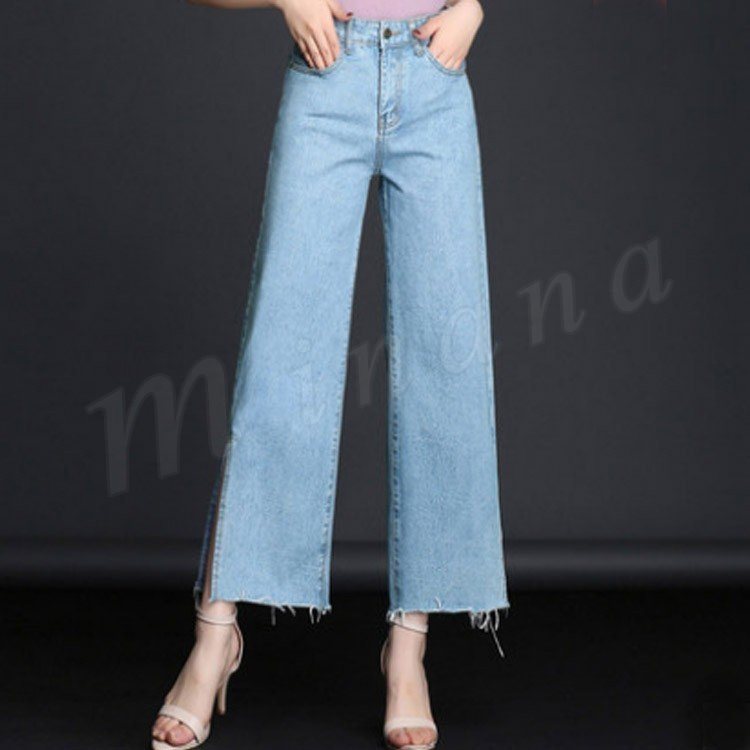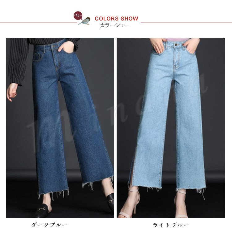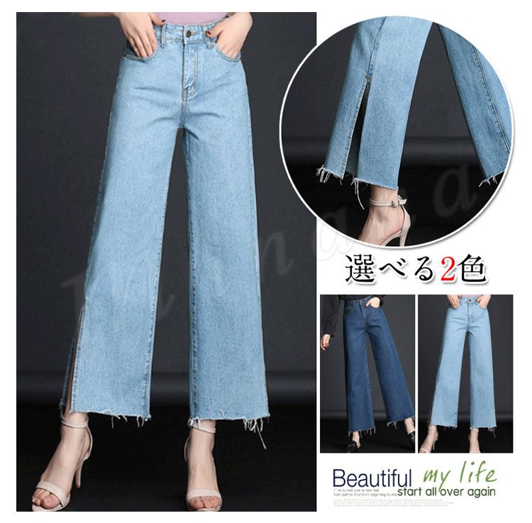 ボトムス デニムパンツ ワイドパンツ スリッド レディー スジーンズ デニムパンツ