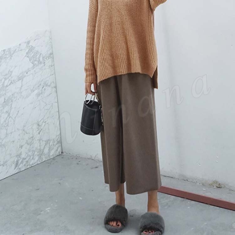 パンツ ワイドパンツ ワイド ガウチョ ガウチョパンツ レディース ニット ニットパンツ 無地 ベーシック シンプル