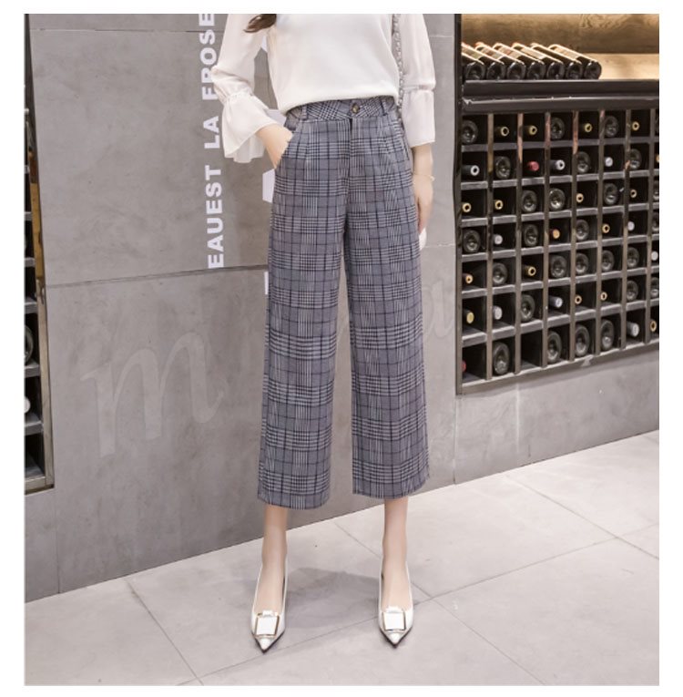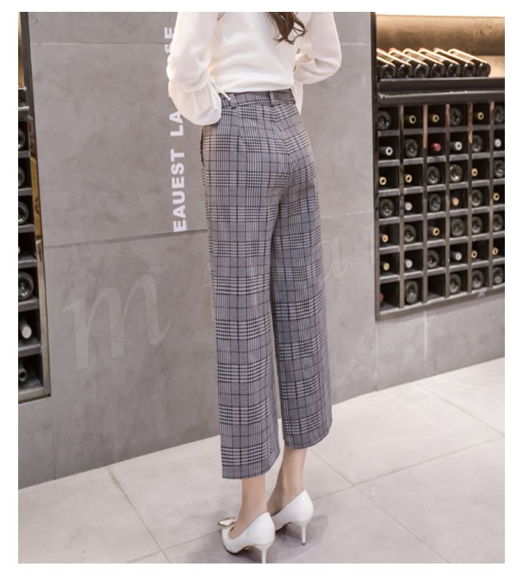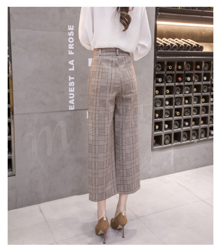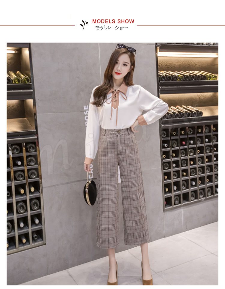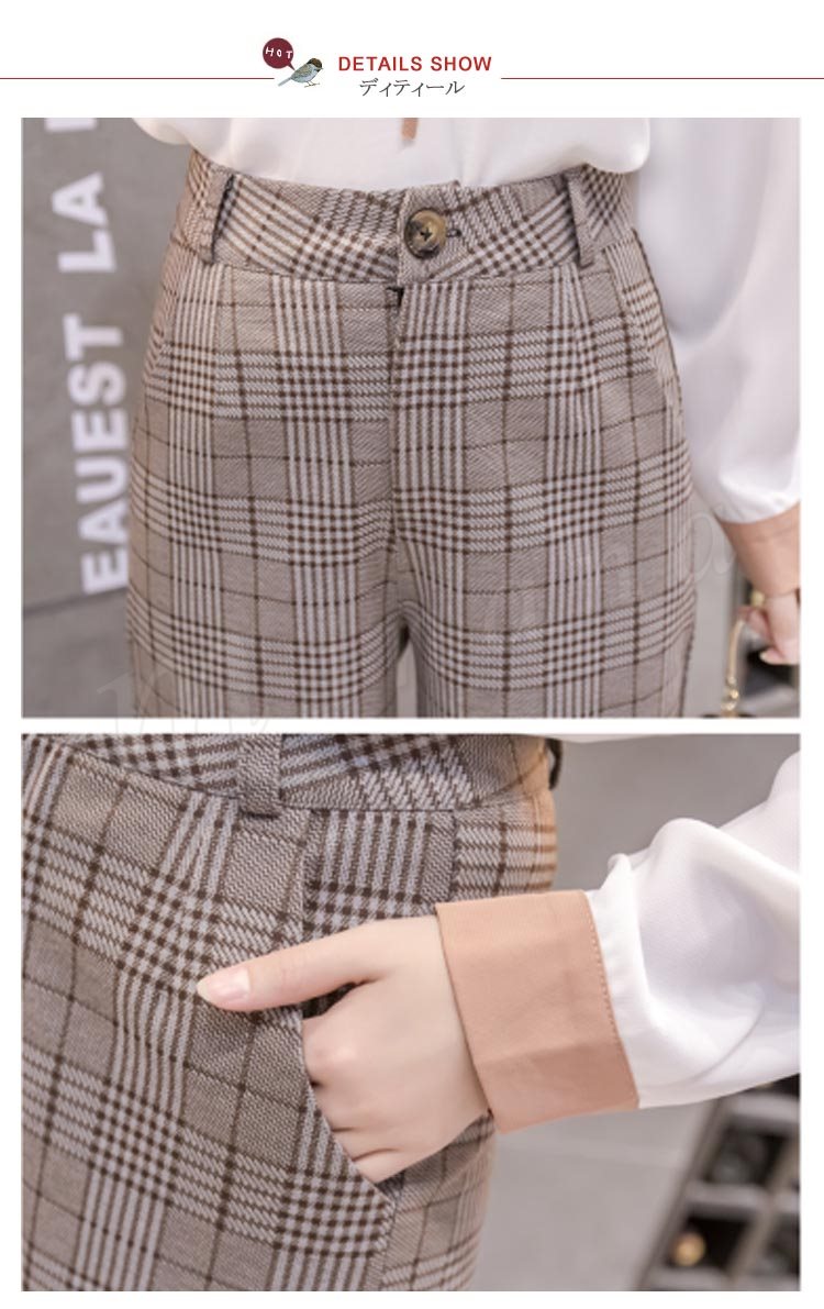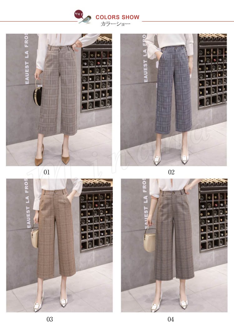 パンツ クロップドパンツ グレンチェック チェック レディース グレー タックパンツ タック ボトムス