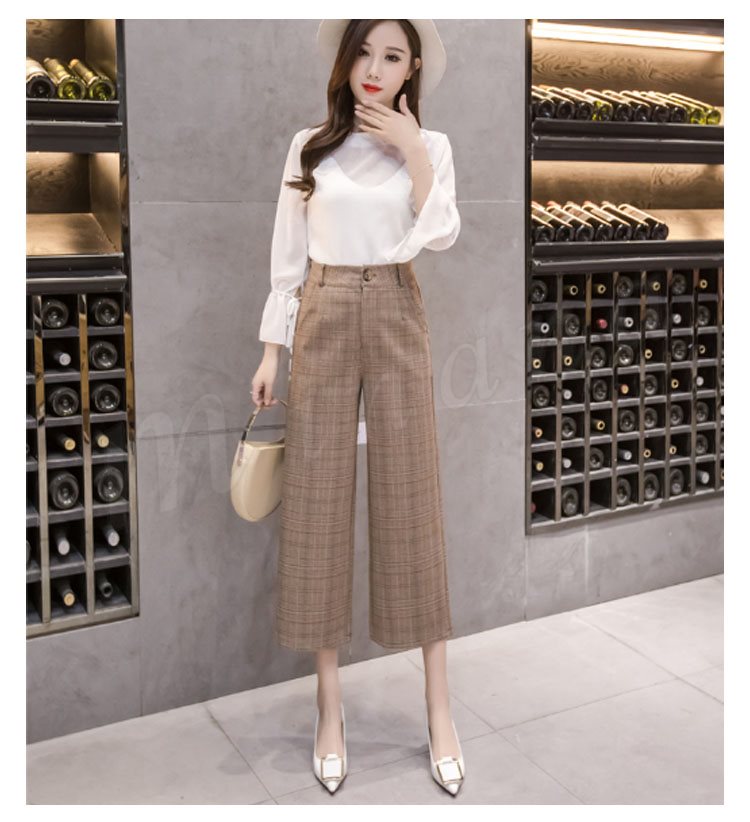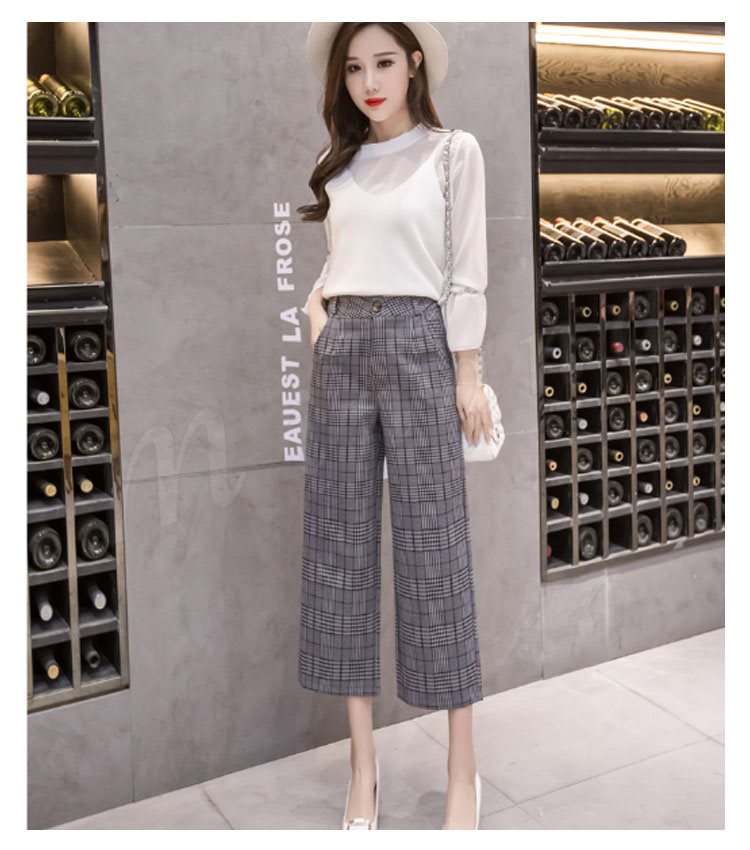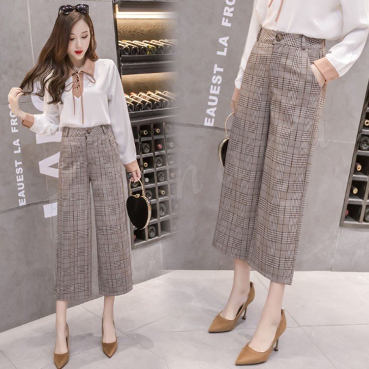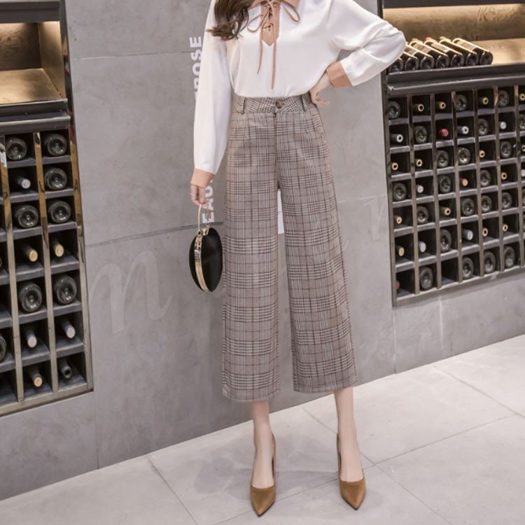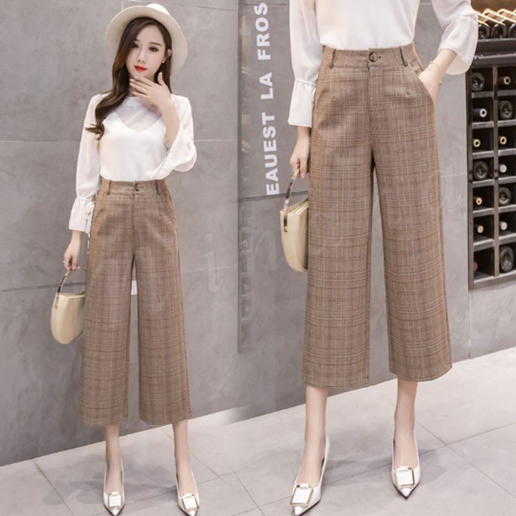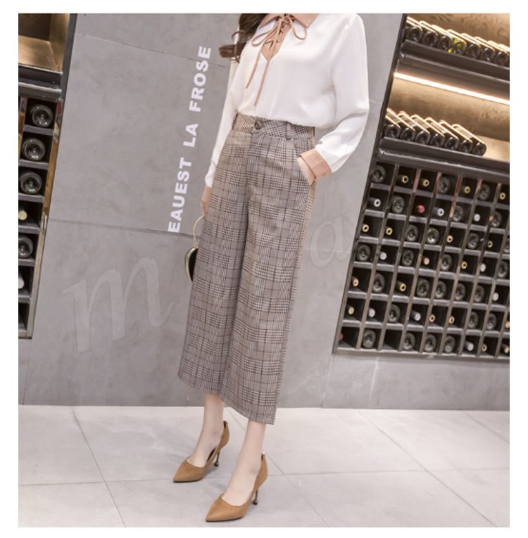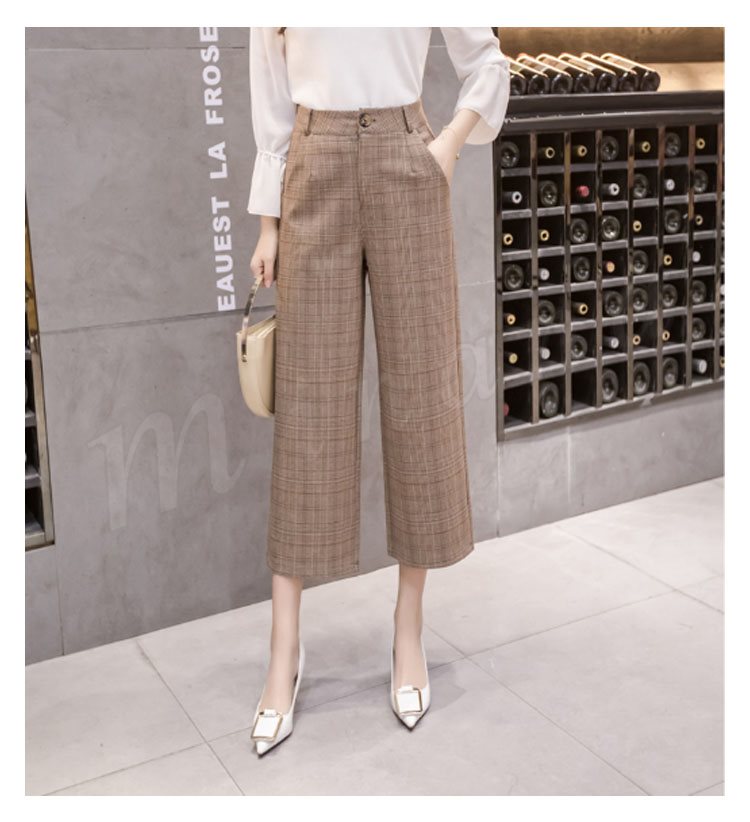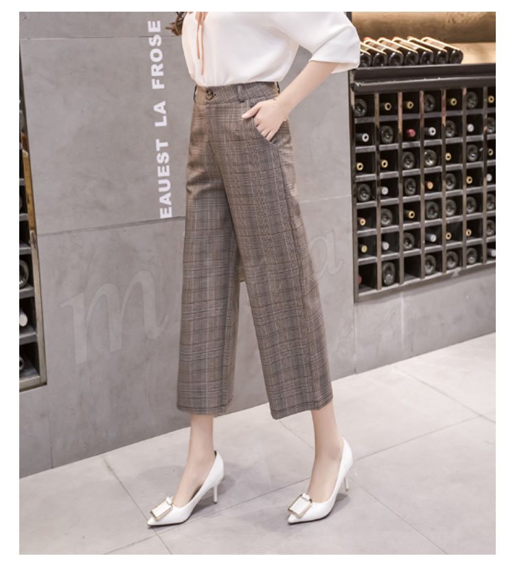 パンツ クロップドパンツ グレンチェック チェック レディース グレー タックパンツ タック ボトムス