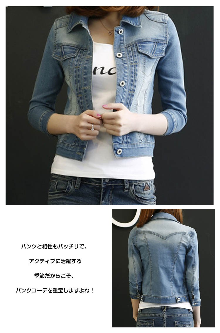 デニムジャケットデニムレディースジージャンジャケットストレッチGジャンコートレディーストップス