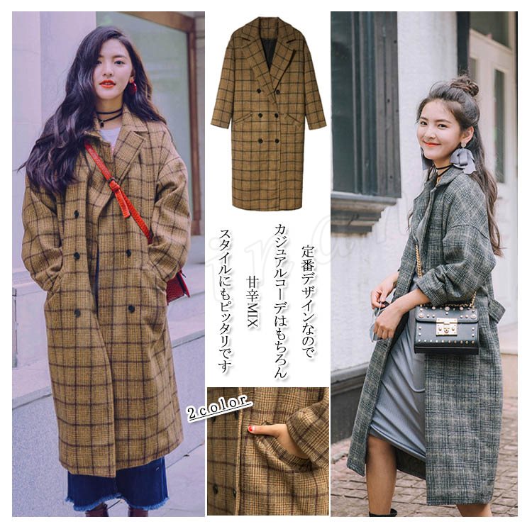 ロングコート コート チェスターコート ロングジャケット アウター ブロックチェック オーバーサイズ 羽織り ロング あったか 防寒 シンプル