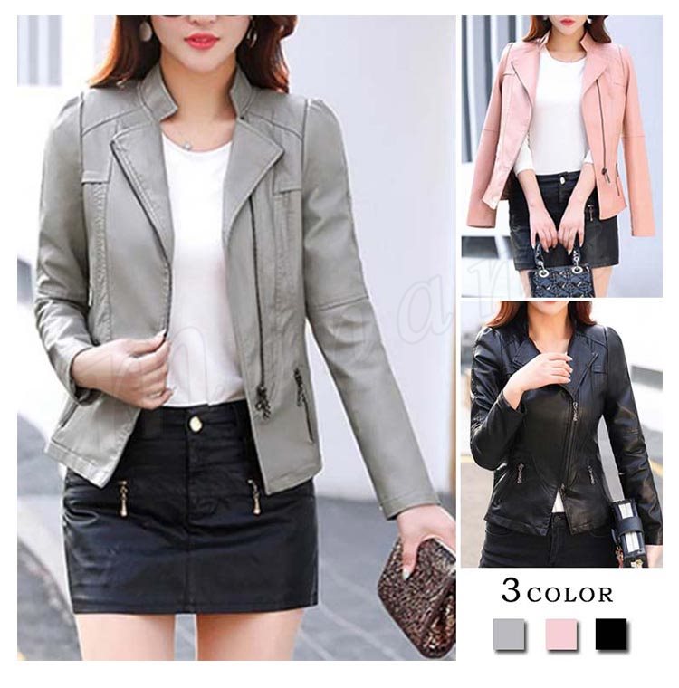 ライダースジャケット/ジャケット/レディース/PU/ショートコート/長袖/フェイクレザー/ダブル/アウター/PUレザージャケット/大きいサイズ