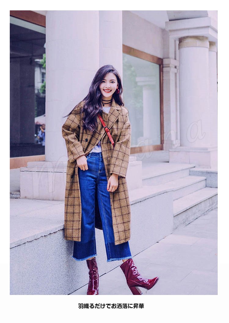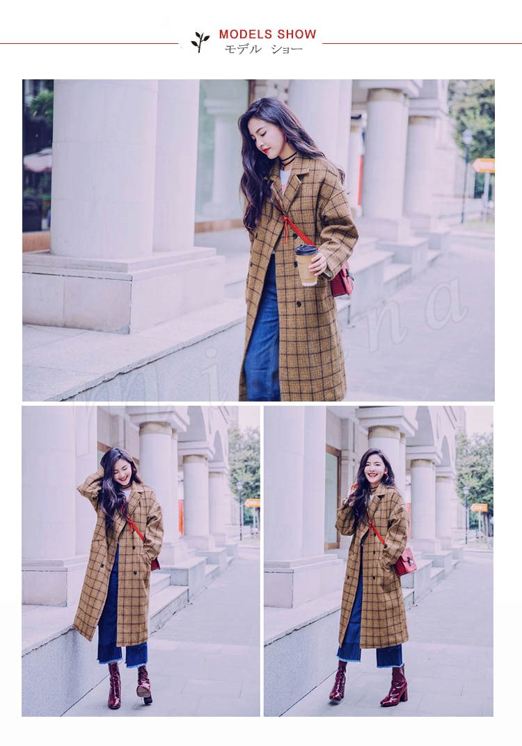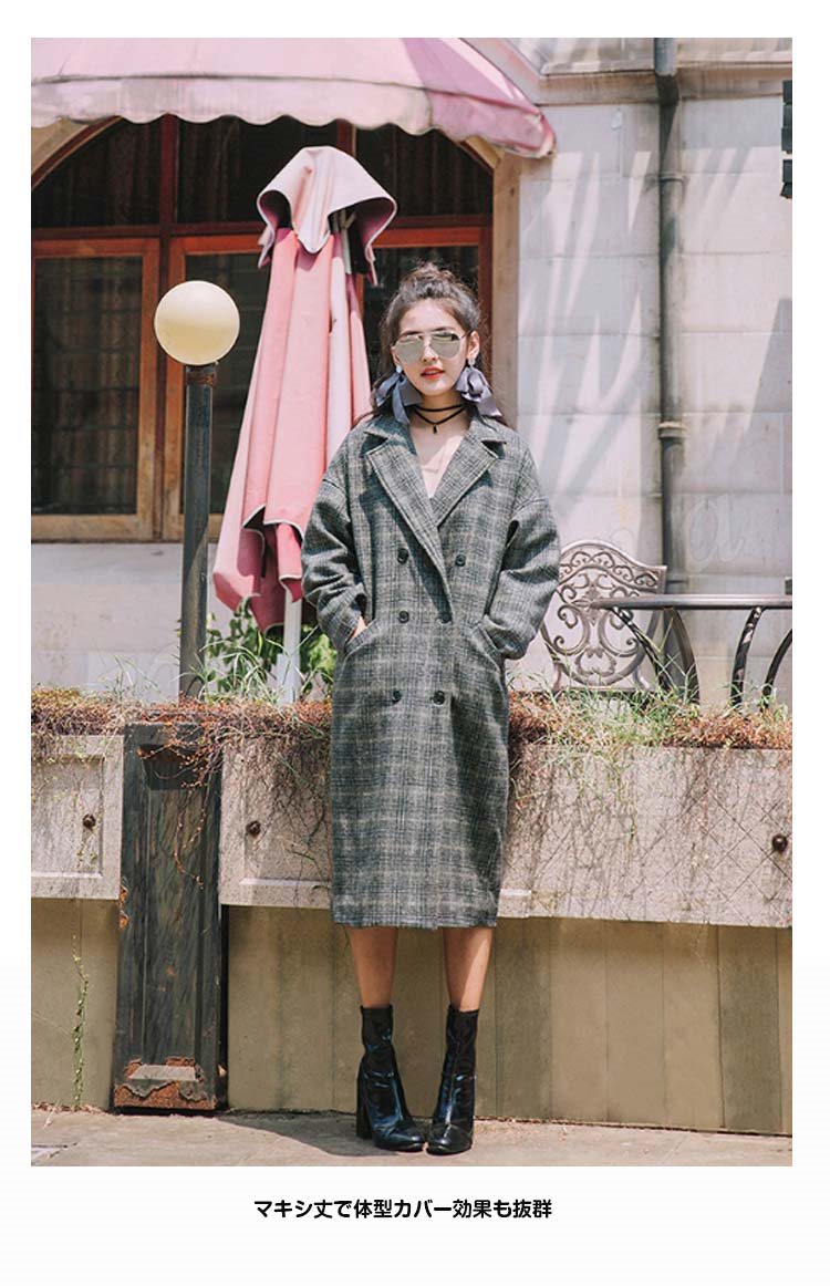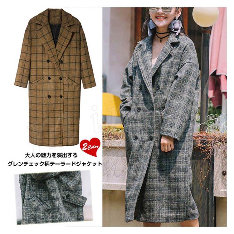 グレンチェック/レディース/テーラードジャケット/ロングジャケット/ライトアウター/羽織り/トレンチコート/長袖/マキシ丈/ポケット付き/ダブ