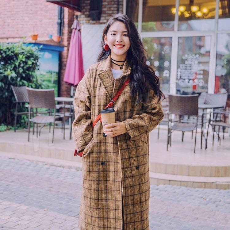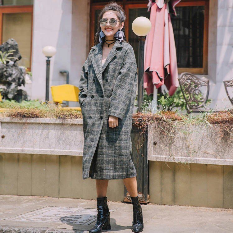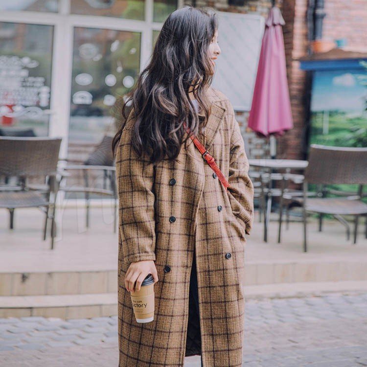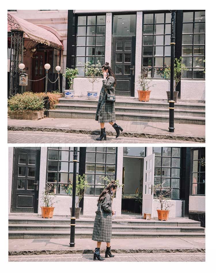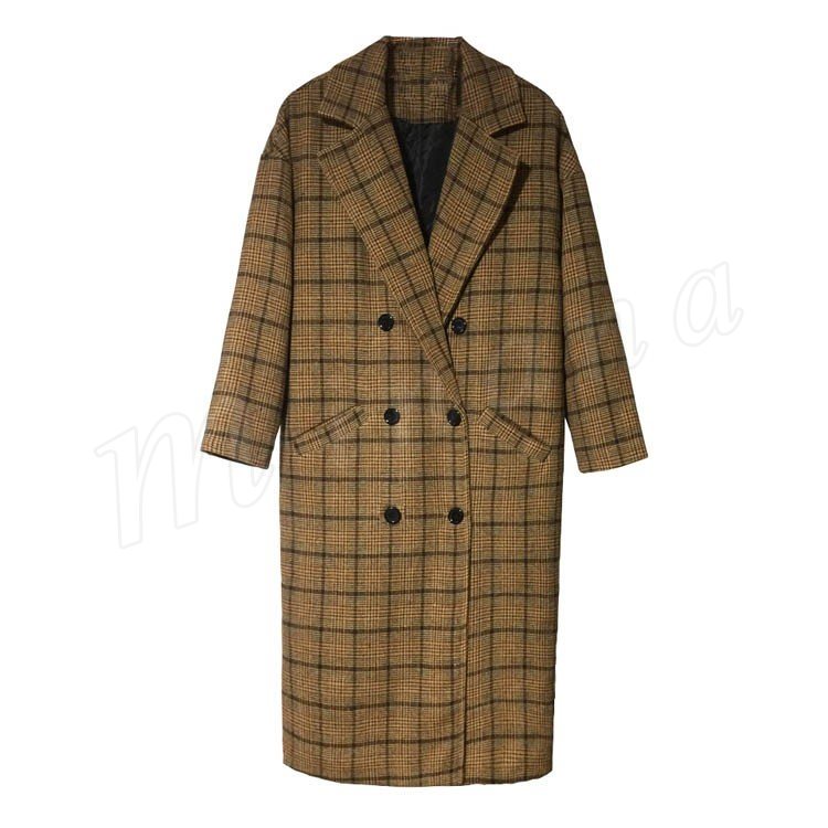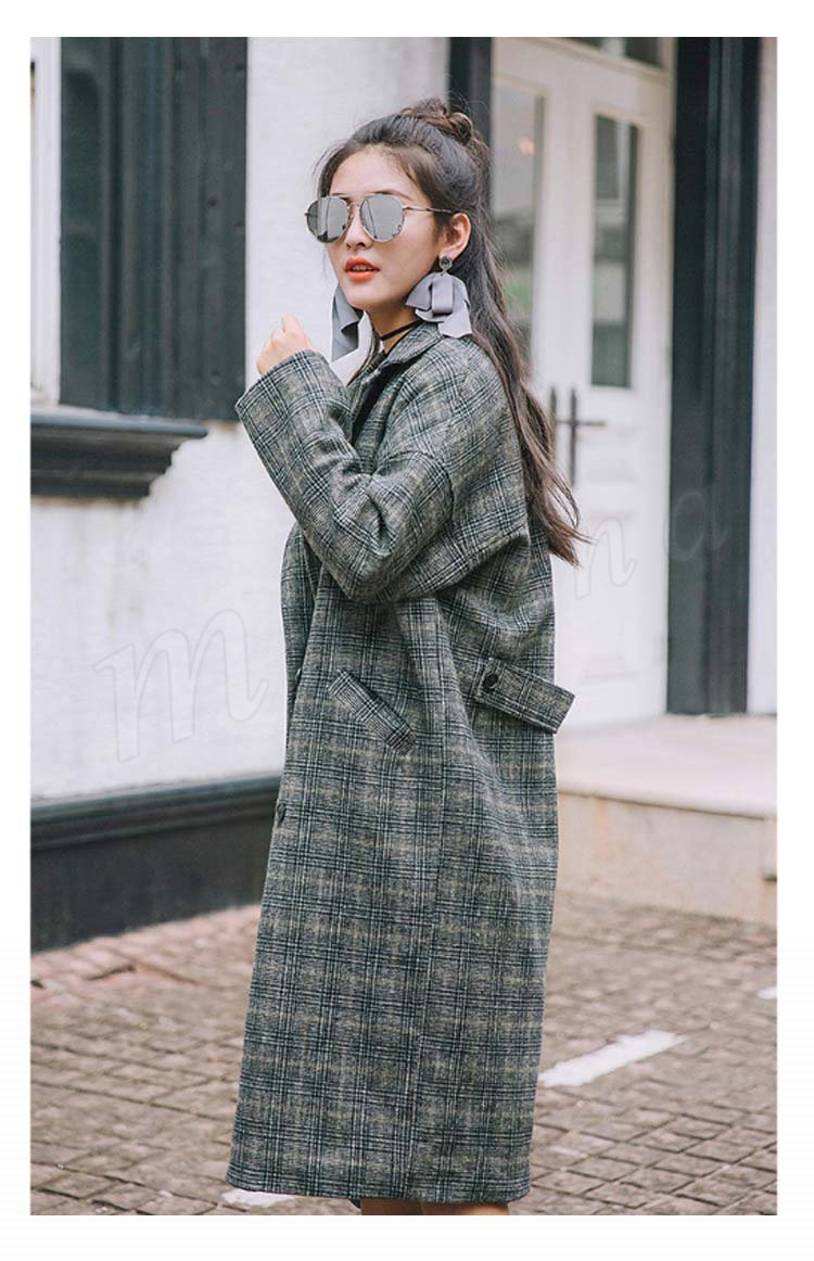 グレンチェック/レディース/テーラードジャケット/ロングジャケット/ライトアウター/羽織り/トレンチコート/長袖/マキシ丈/ポケット付き/ダブ