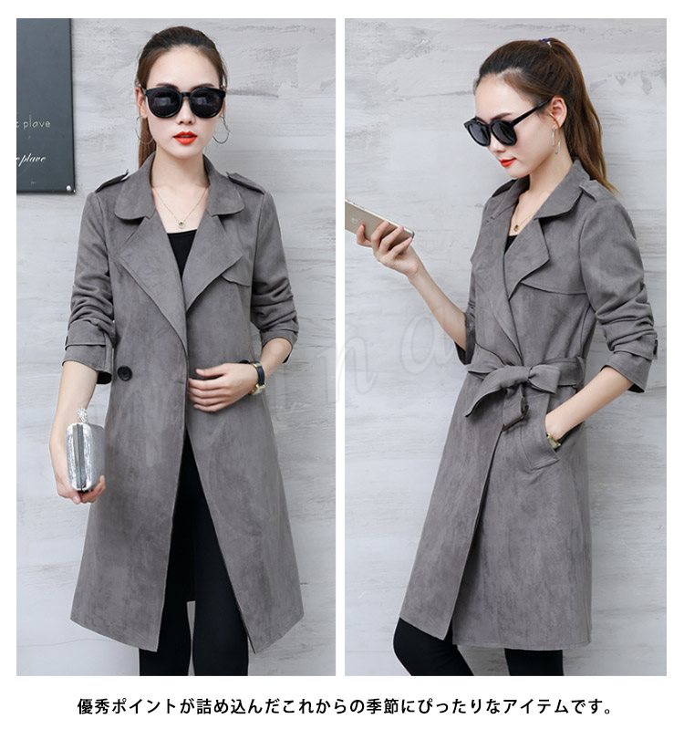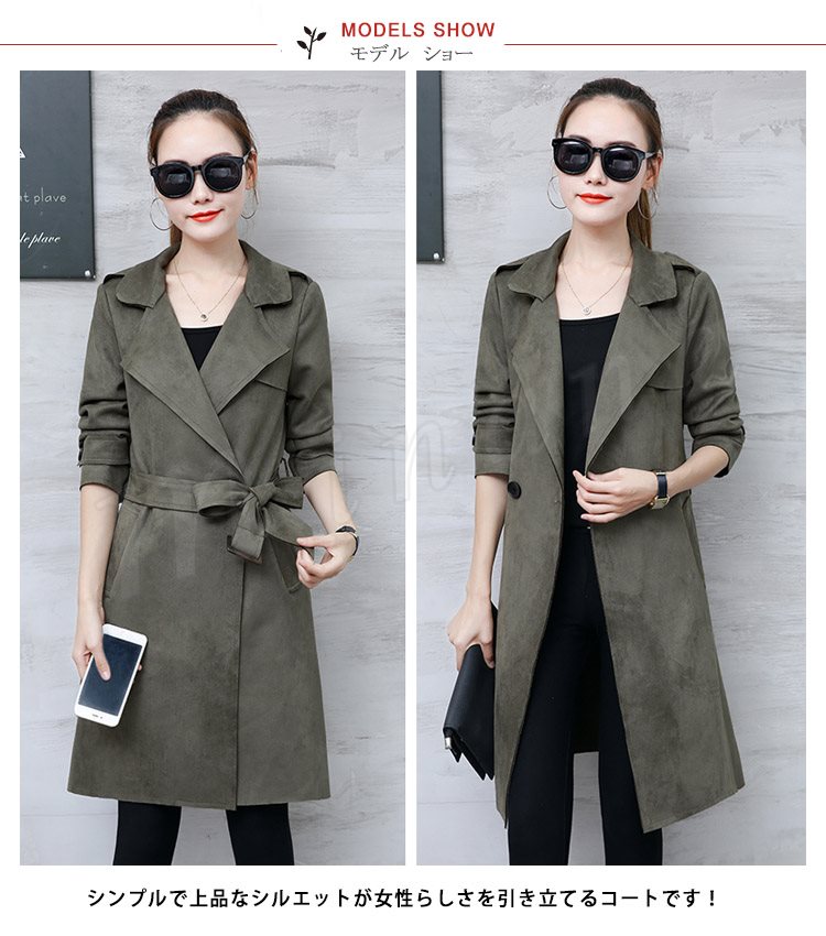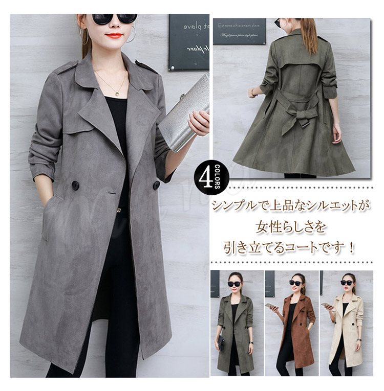 トレンチコート レディース チェスターコート ロング セーム革 アウター 秋冬 通勤 ジャケット エレガント キレイめ 秋冬新作