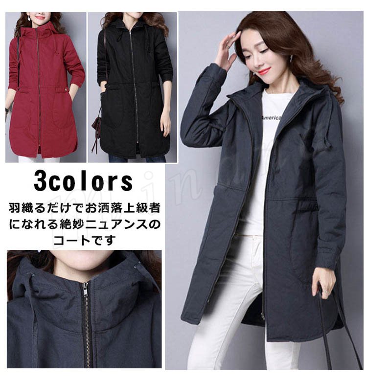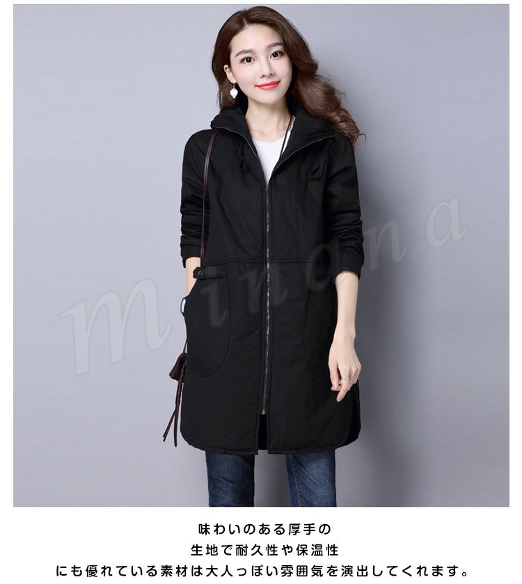中綿コート レディース コート アウター 長袖 膝丈 Aライン ロング丈 フード付き ピーコート 無地 レディース 大人 上品 キレイめ コー