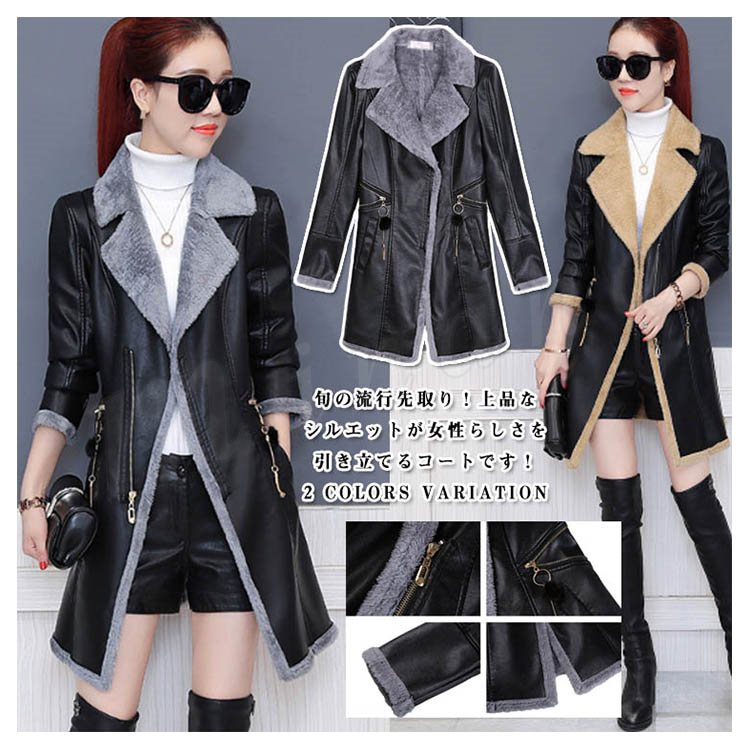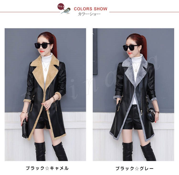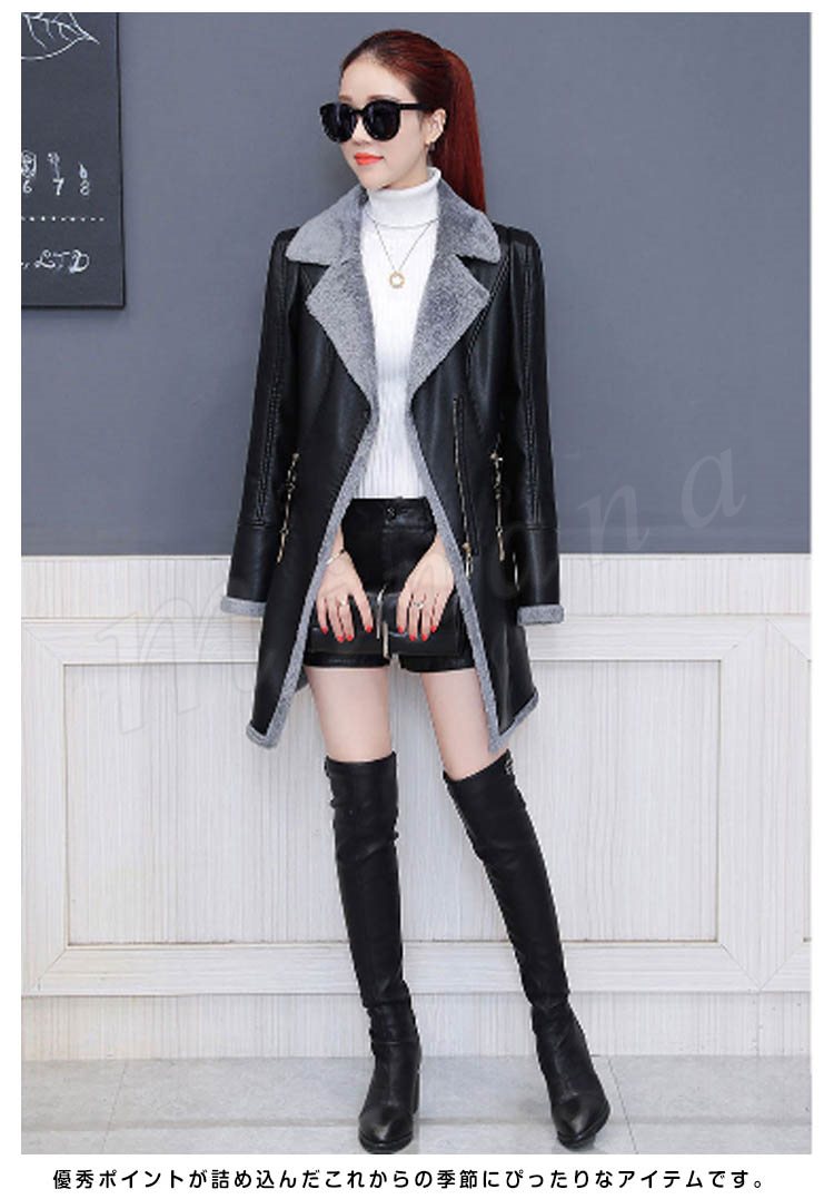 裏起毛 レザージャケット レディース ライダースジャケット フェイクレザージャケット ロング丈 アウター コート 革ジャン 春秋冬 新作
