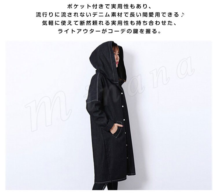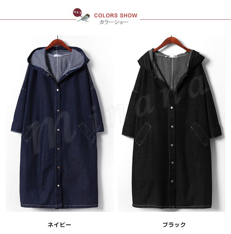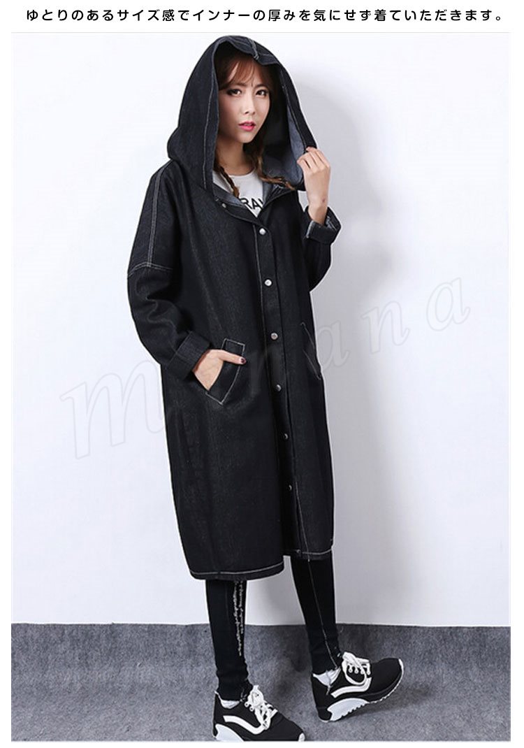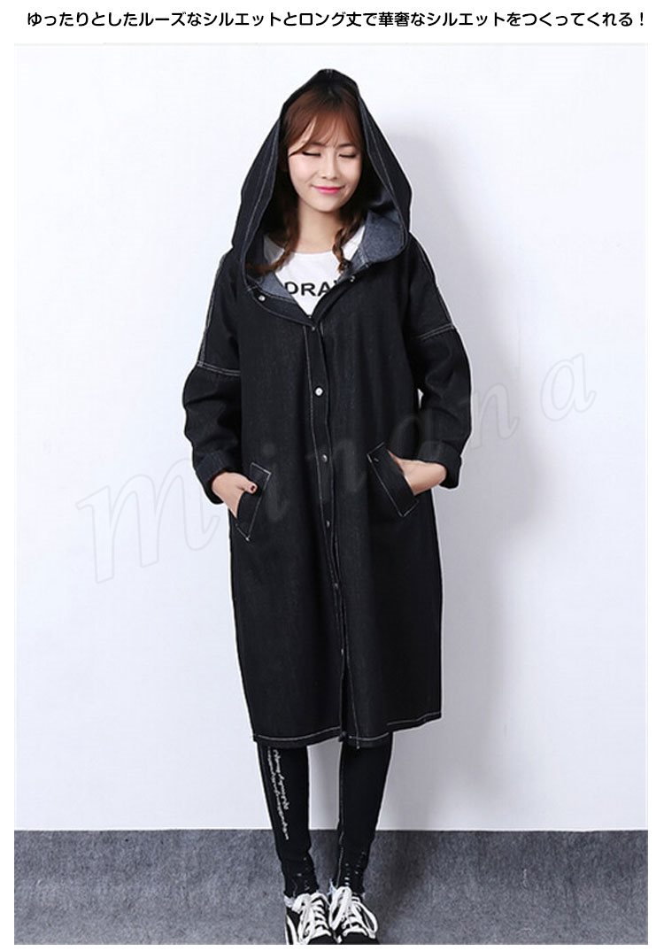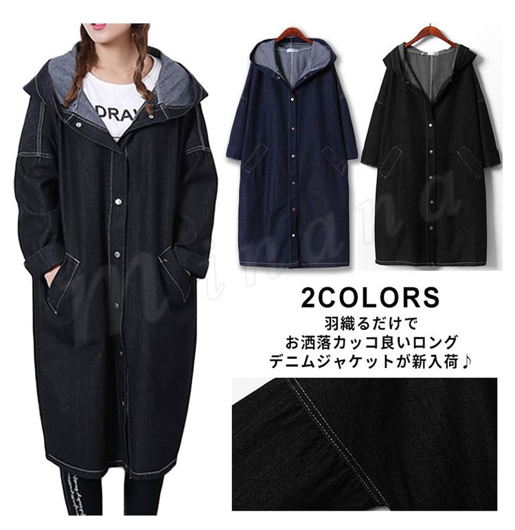 デニムジャケット デニムコート ロングコート レディース BF風アウター フード付き パーカー デニムアウター ロングジャケット 秋冬新作