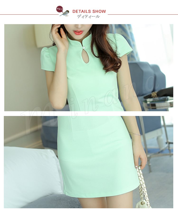 チャイナドレス スタンドカラー 中国風 レディース 無地 スリム クラシック風 セクシー 着痩せ チャイナ ヒップアップ 半袖 ショ