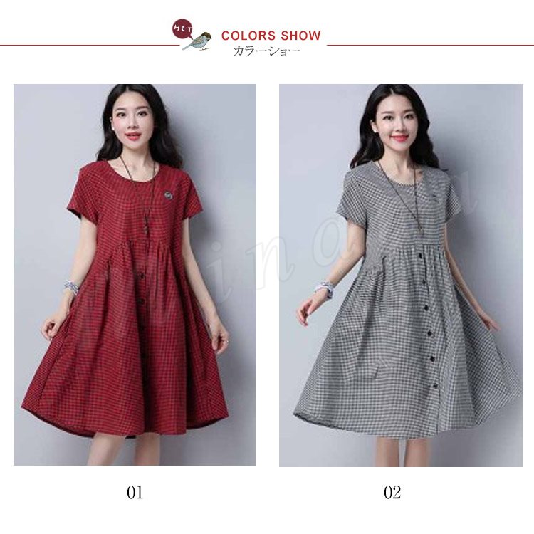 ワンピース 膝丈 レディース 大きいサイズ ワンピース 結婚式 リネン ワンピース リゾート 半袖 森ガール 2018春夏新作
