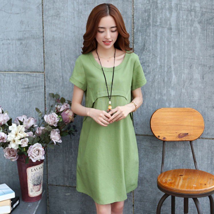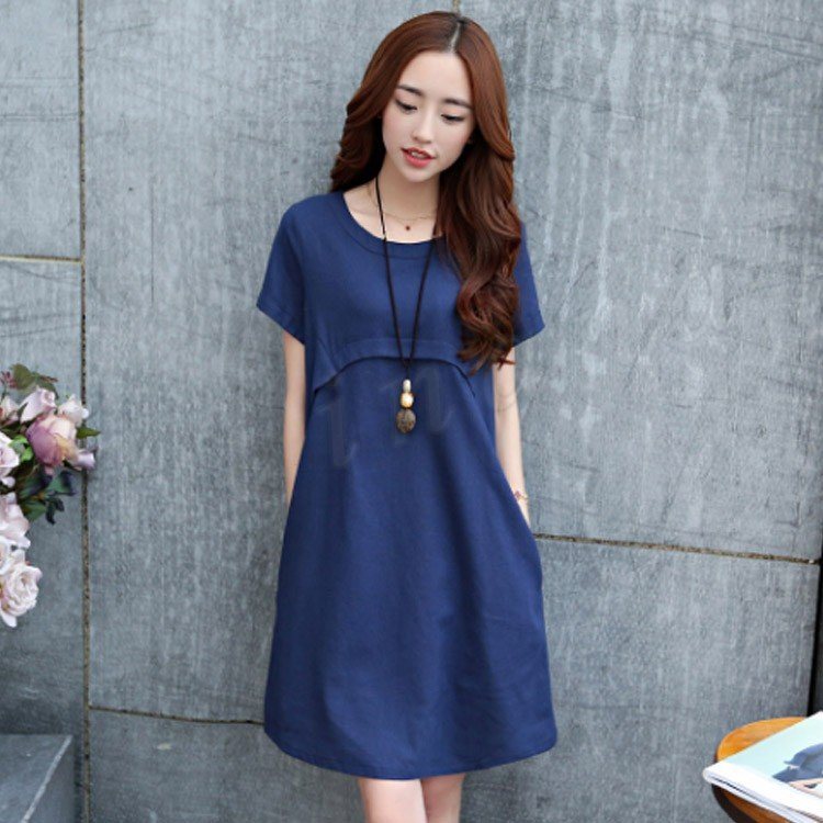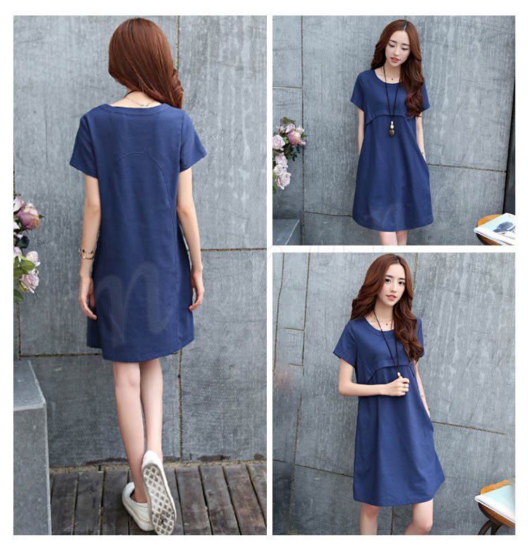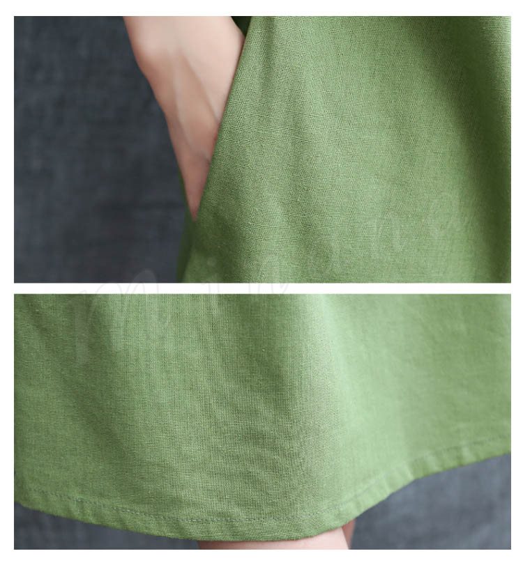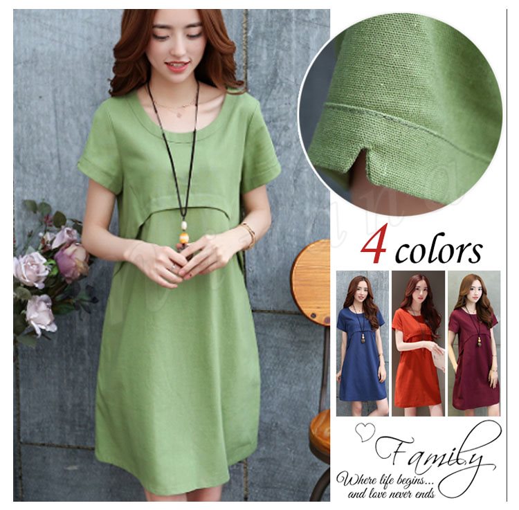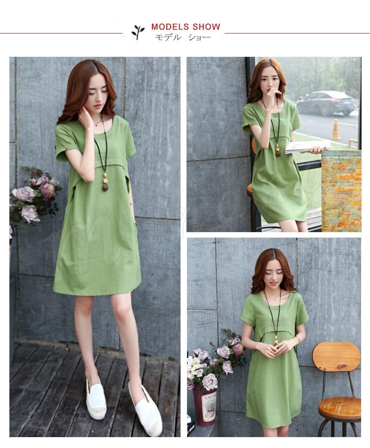 ワンピース 膝丈 レディース 大きいサイズ ワンピース 結婚式 無地 リネン ワンピース リゾート 半袖 森ガール 2018春夏新作