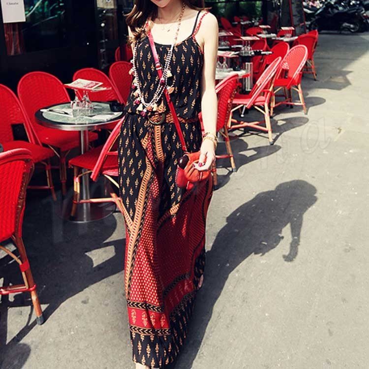 ワンピース マキシワンピースボヘミアンキャミワンピロング丈