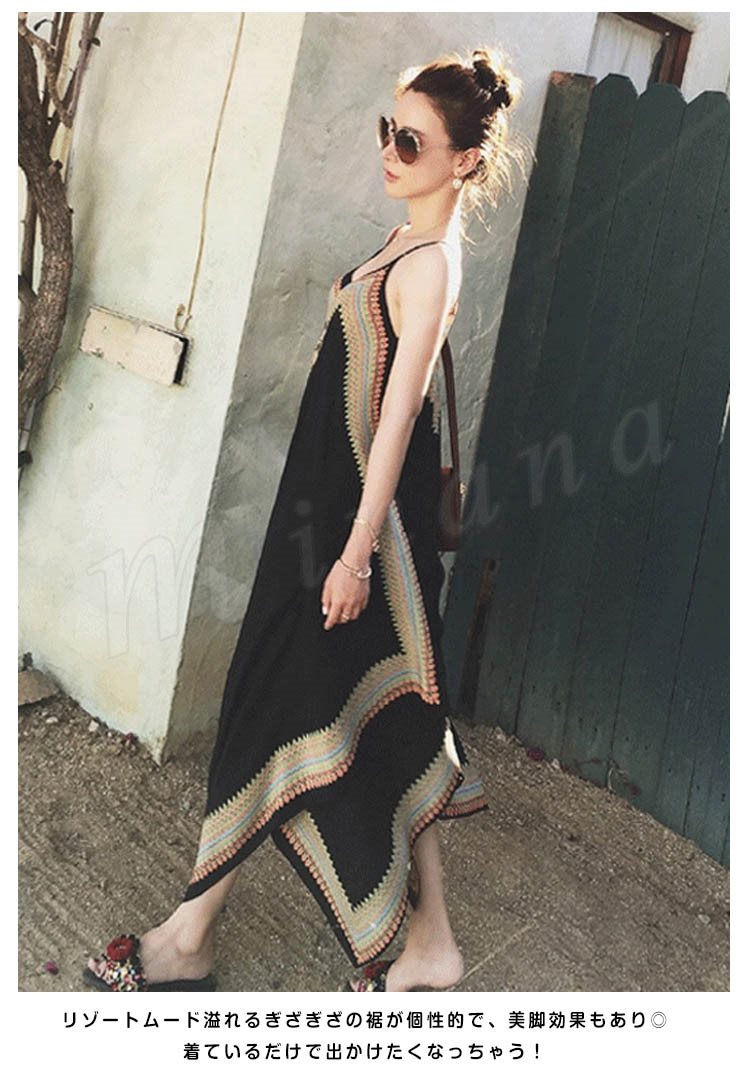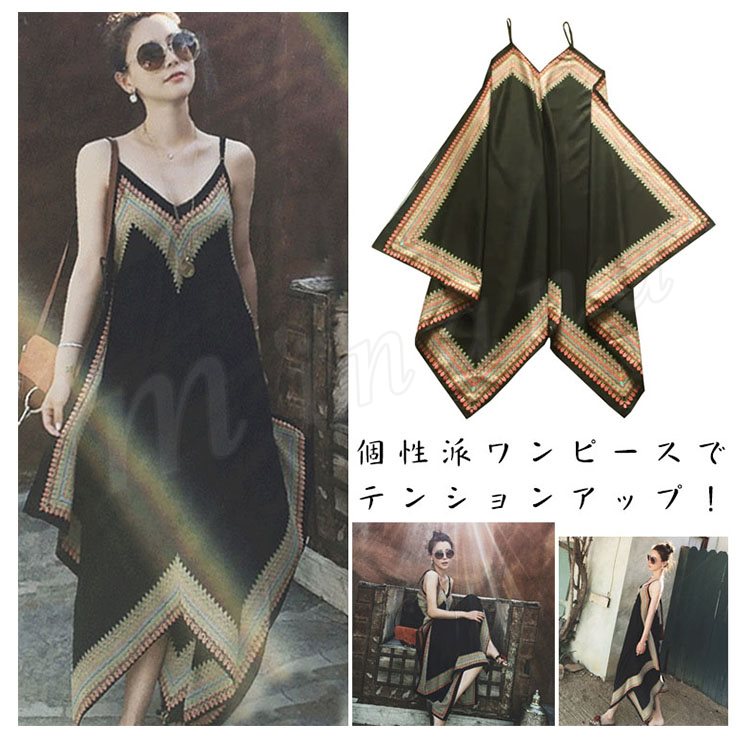 キャミソールワンピース ボヘミア イレギュラーヘム ゆったり 着痩せ 体型カバー 個性派 キャミワンピ ノースリーブ ワンピース レディース