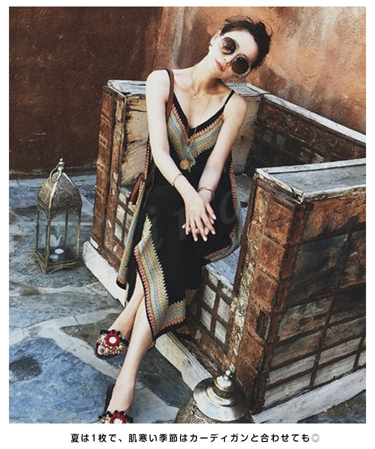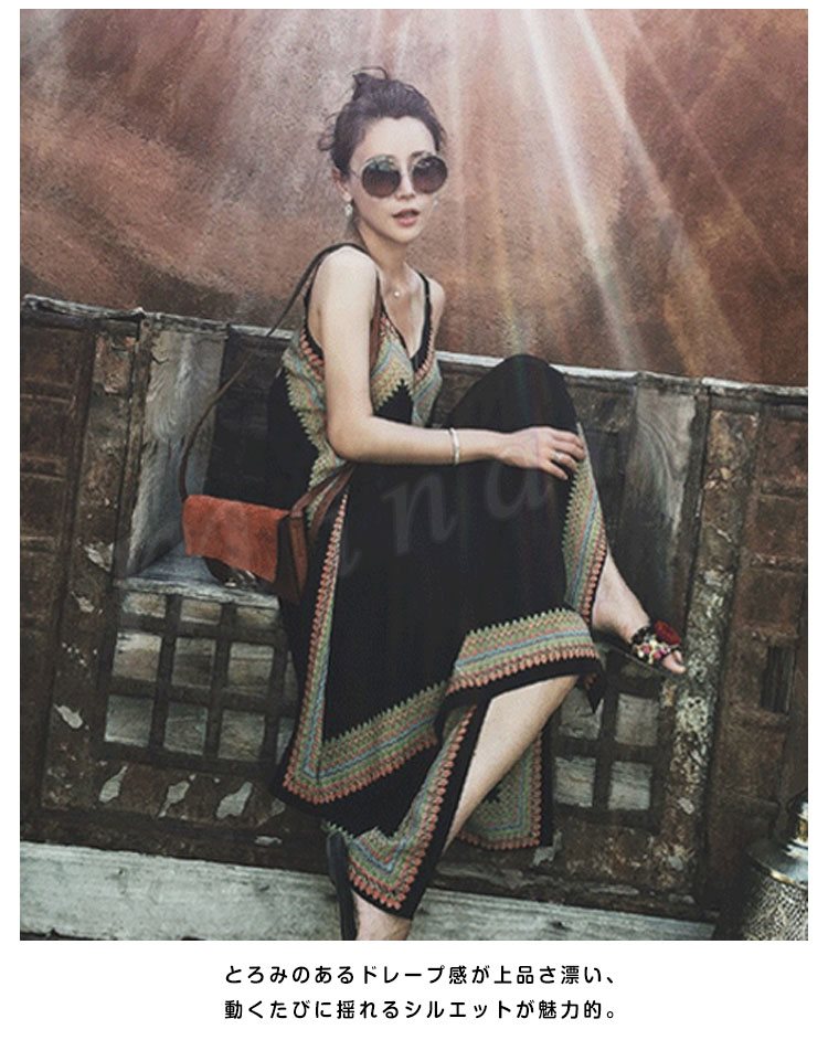 | 個性派ワンピースでテンションアップ! 一枚で大人女性の譲れない存在! とろみのあるドレープ感が上品さ漂い、動くたびに揺れるシルエットが魅力的。 リゾートムード溢れるぎざぎざの裾が個性的で、美脚効果もあり◎ 着ているだけで出かけたくなっちゃう! 夏は1枚で、肌寒い季節はカーディガンと合わせても◎ | |