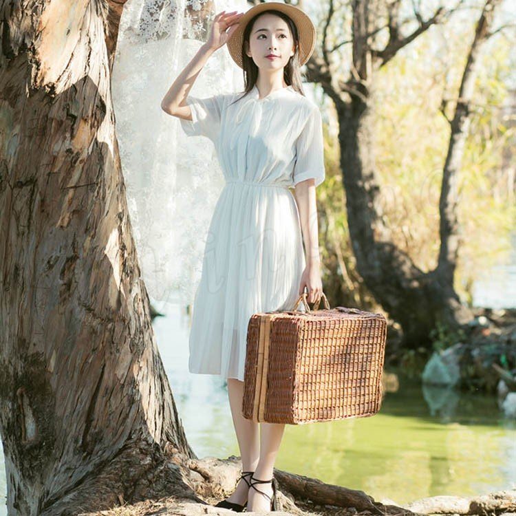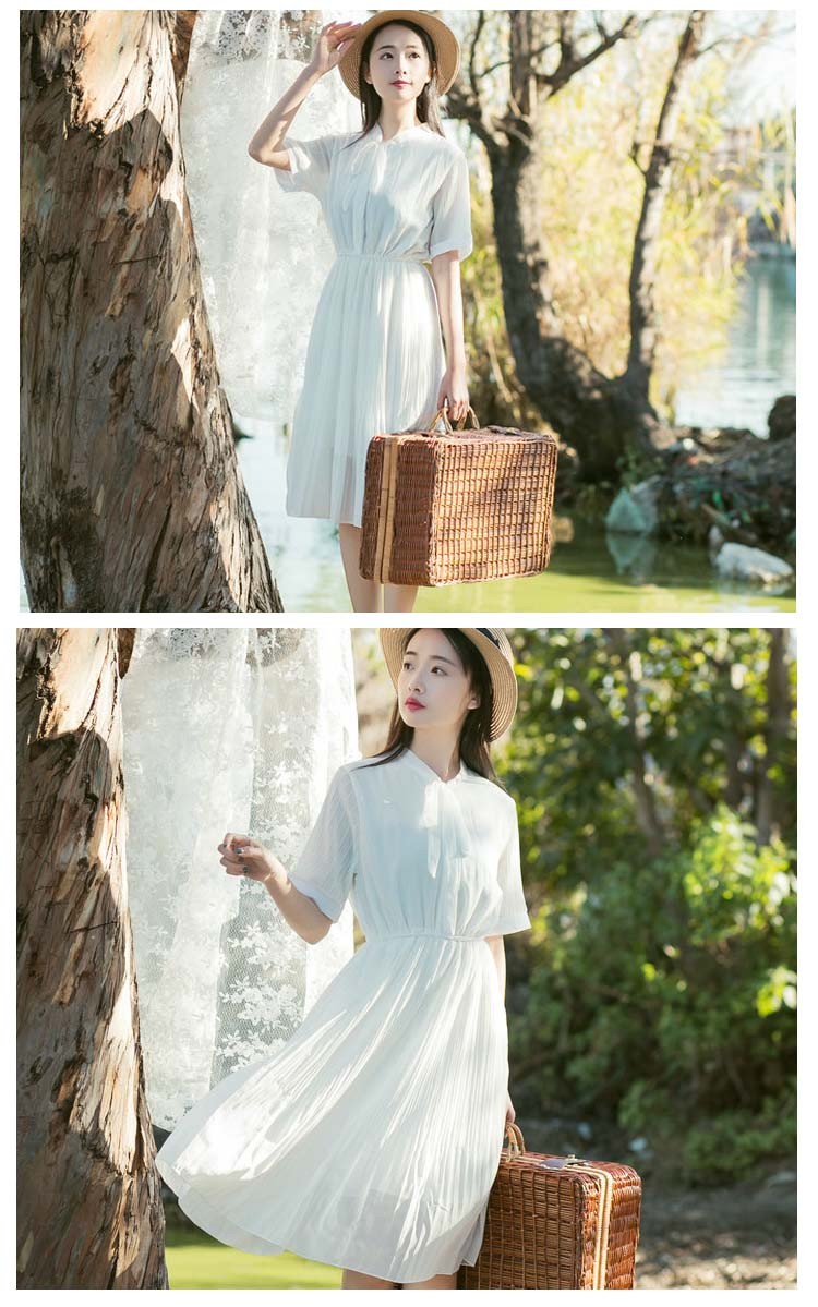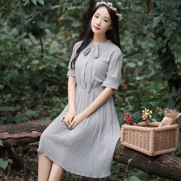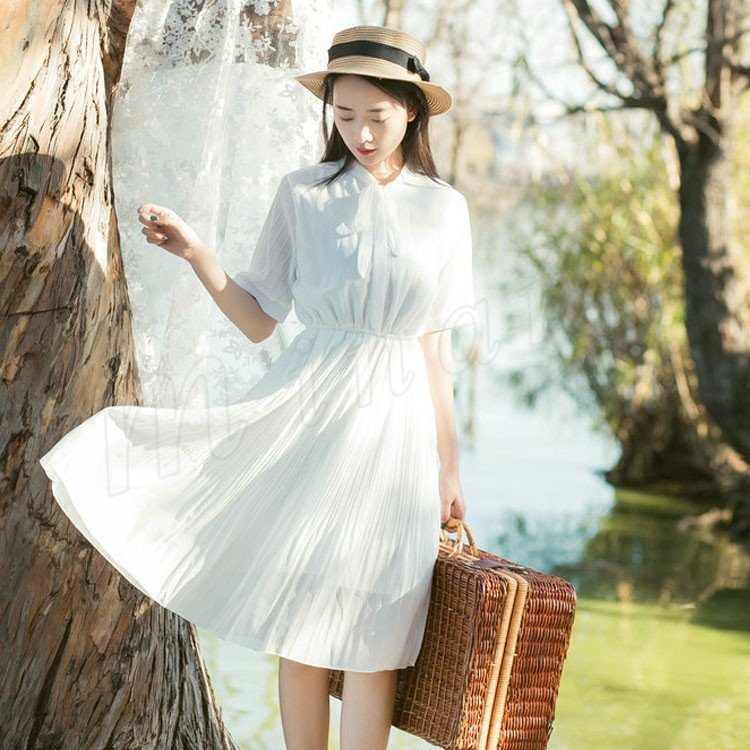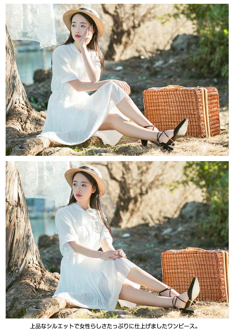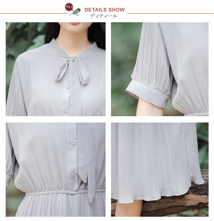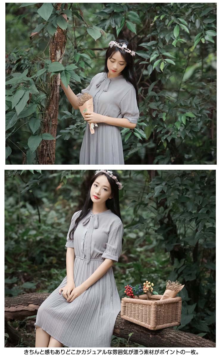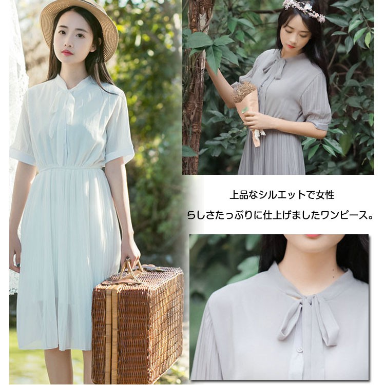ワンピースレディース春夏シフォン半袖ワンピースリボンAライン無地通勤カジュアル上品大人キレイめエレガントシフォンワンピ