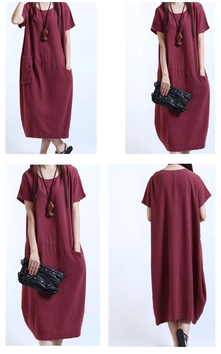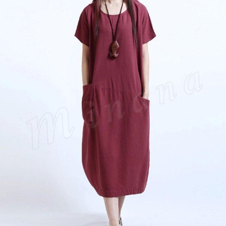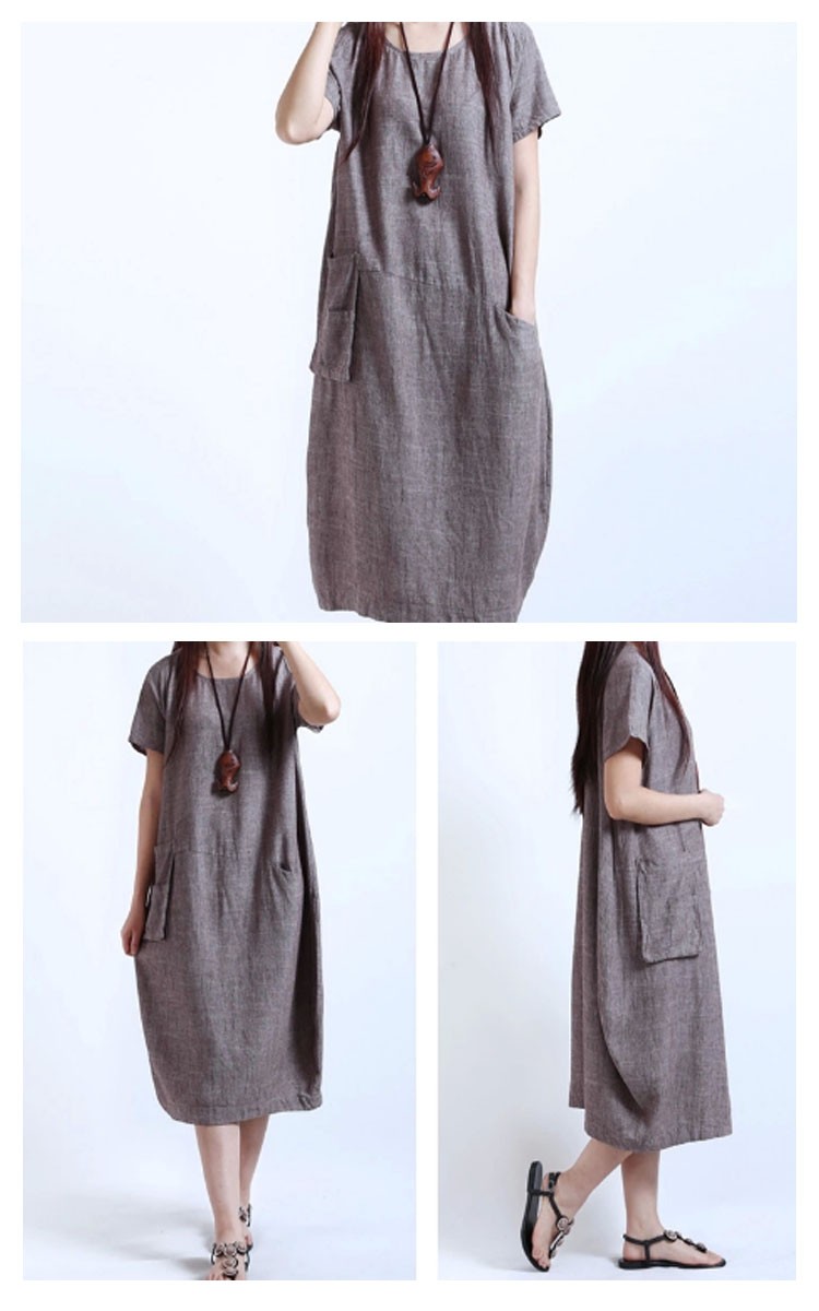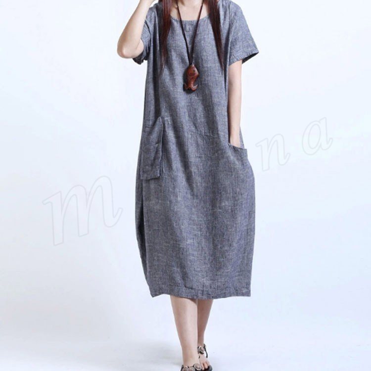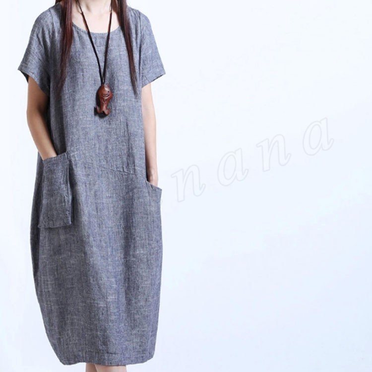 ワンピースロング丈夏半袖リネンレディースワンピースAライン無地ゆったりワンピース森ガール