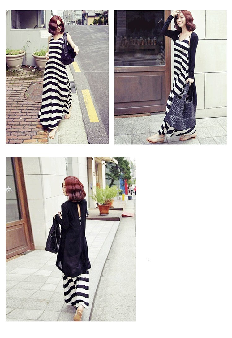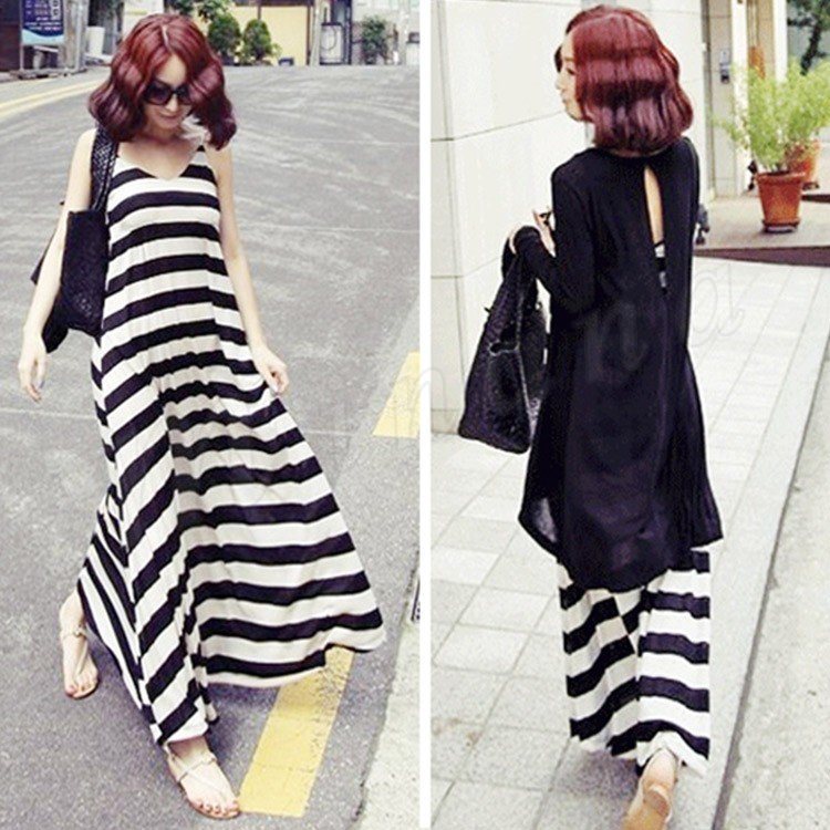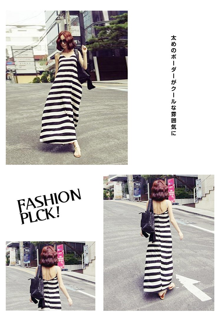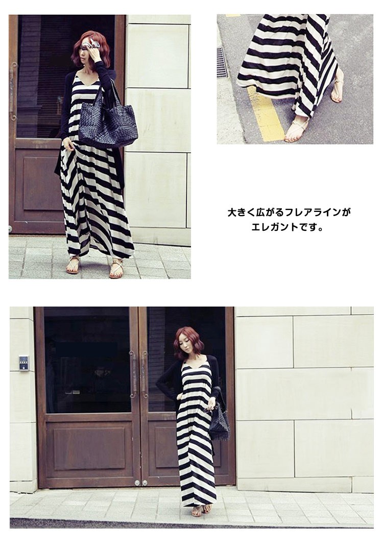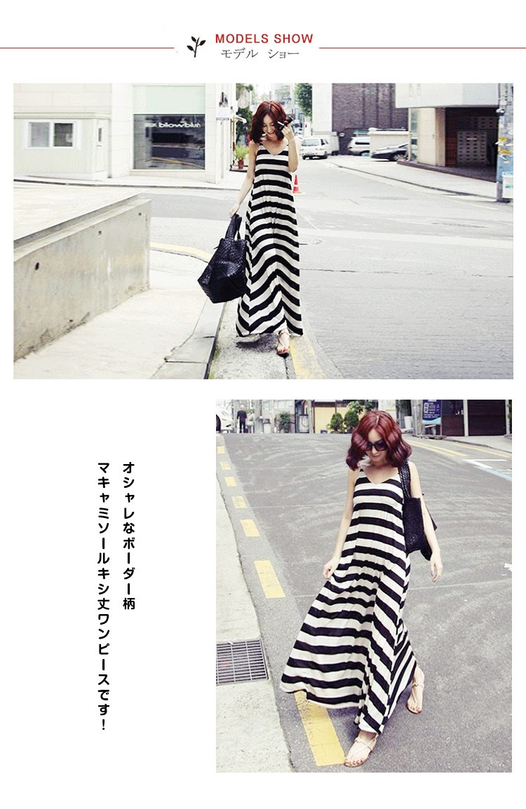 マキシワンピースレディース夏マキシ丈ワンピースノースリーブコットンボーター柄ロング丈ワンピース
