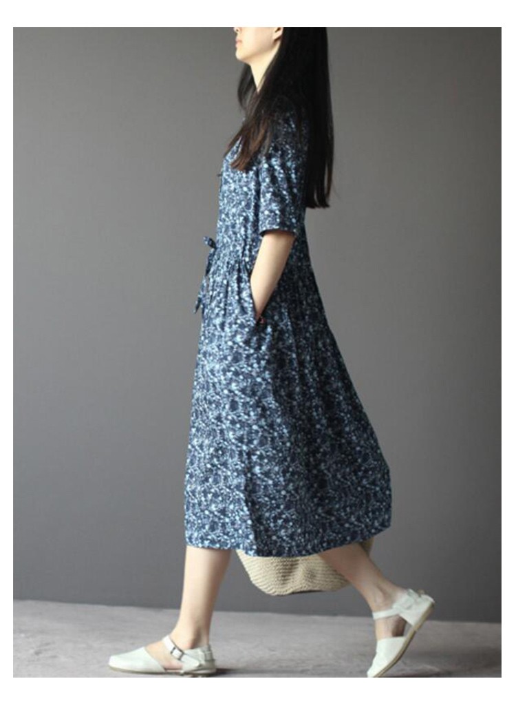 マキシワンピース半袖夏ロング丈ワンピースレディースAラインチュニックウエストゴム夏ワンピ夏新フレア