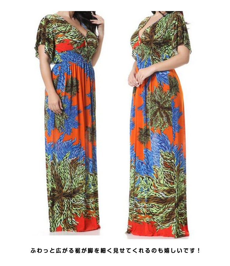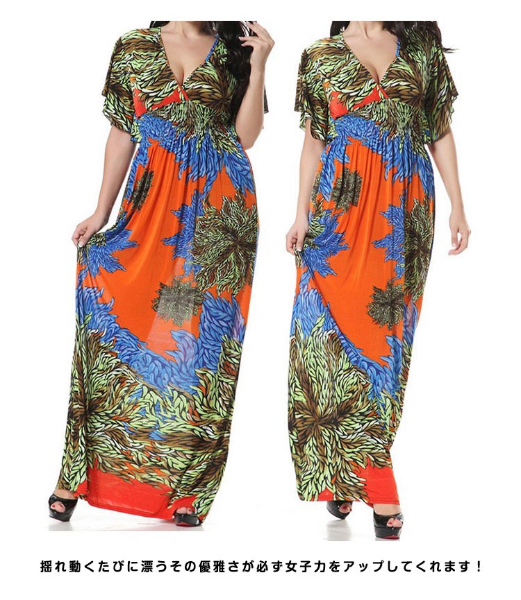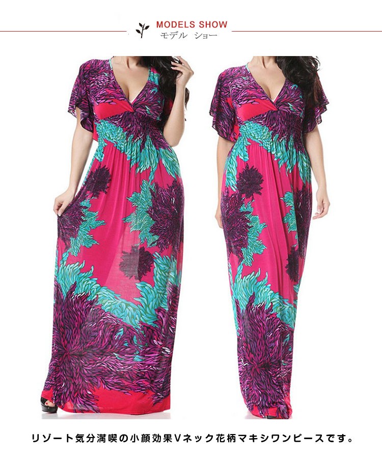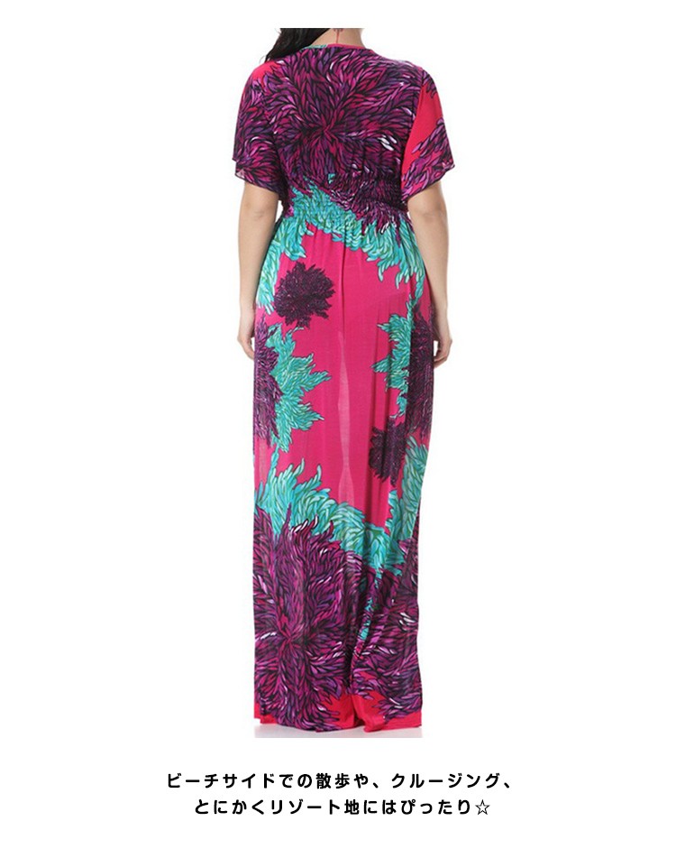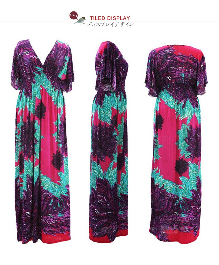 マキシワンピースロング丈夏ワンピースシフォン半袖レディースチュニック花柄ゆったりワンピース欧米