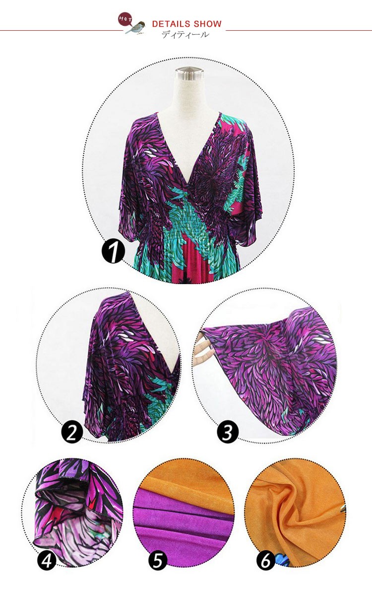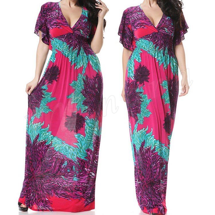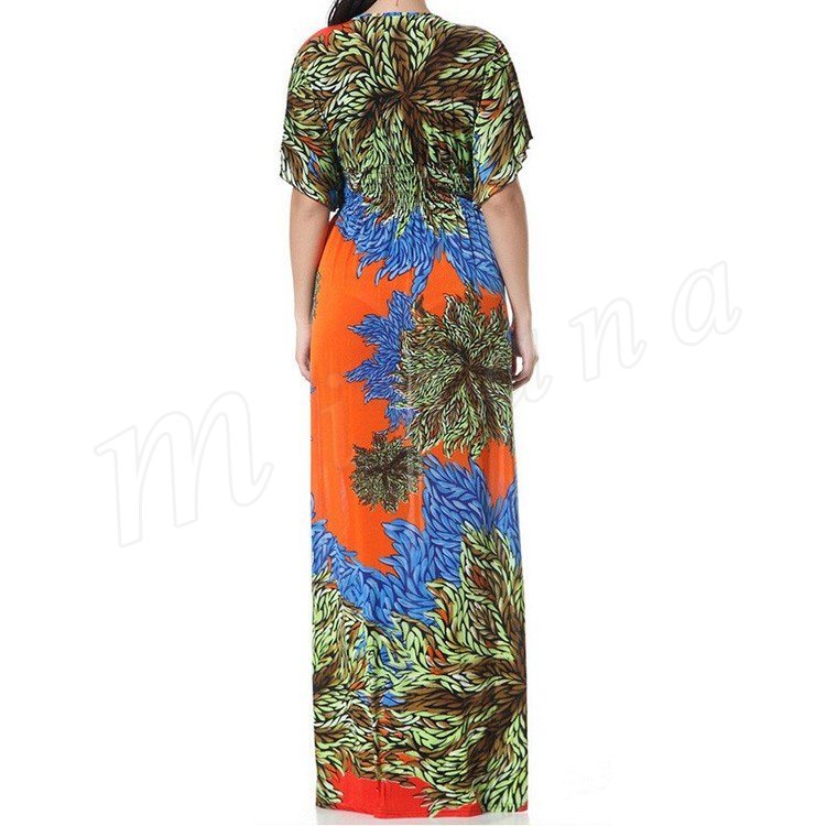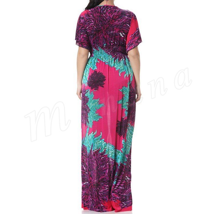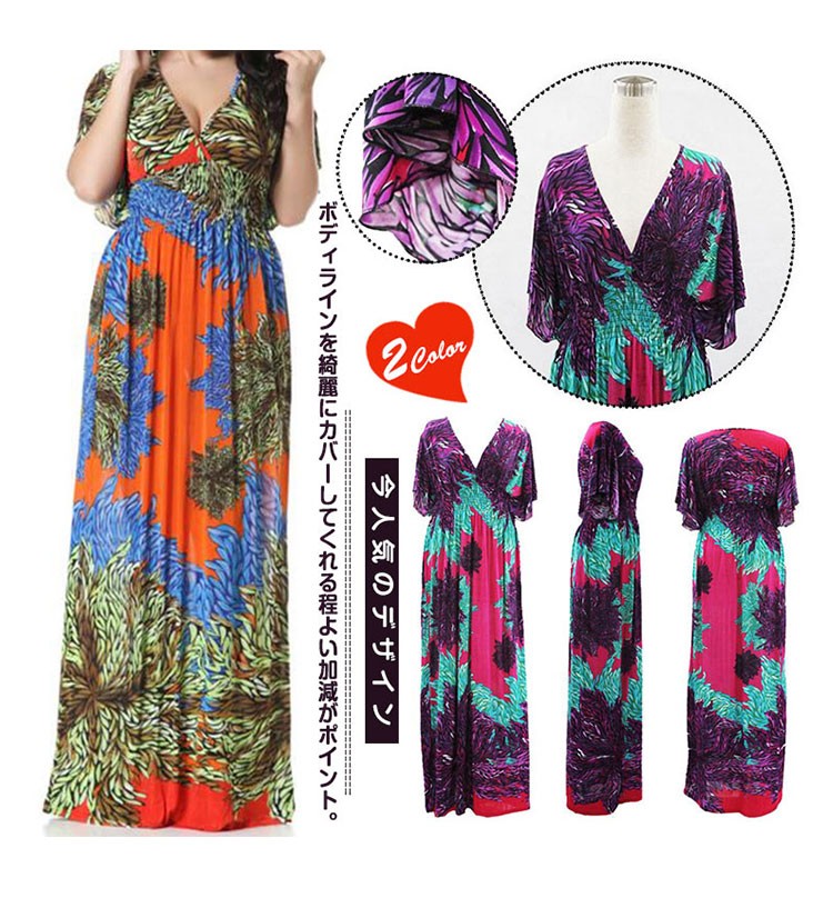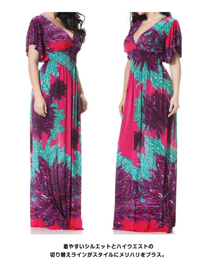 マキシワンピースロング丈夏ワンピースシフォン半袖レディースチュニック花柄ゆったりワンピース欧米