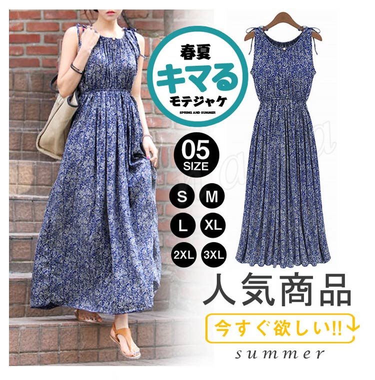 花柄ワンピース ノースリーブ ボヘミアン風 ワンピース マキシ丈 マキシワンピース フェミニン 春夏 レディース