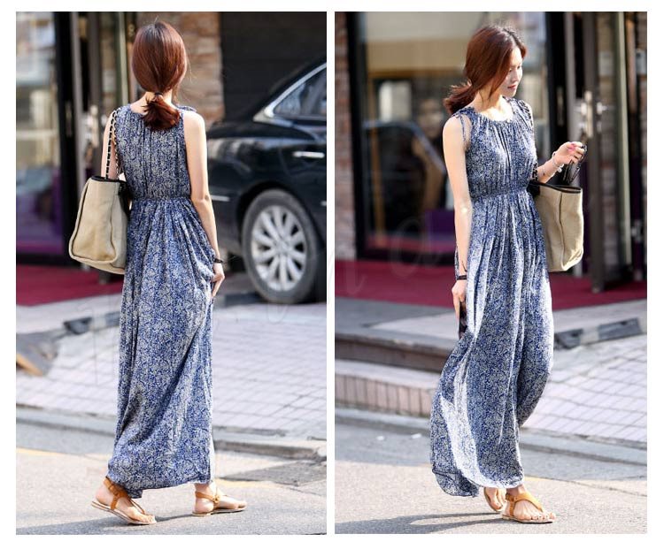 送料無料花柄ワンピース ノースリーブ ボヘミアン風 ワンピース マキシ丈 マキシワンピース フェミニン 春夏 レディース
